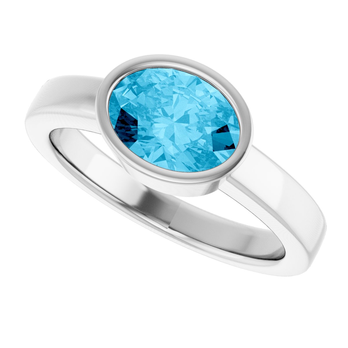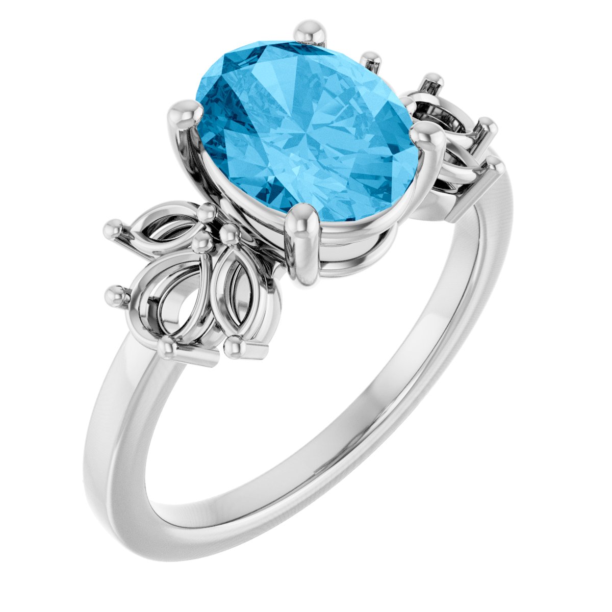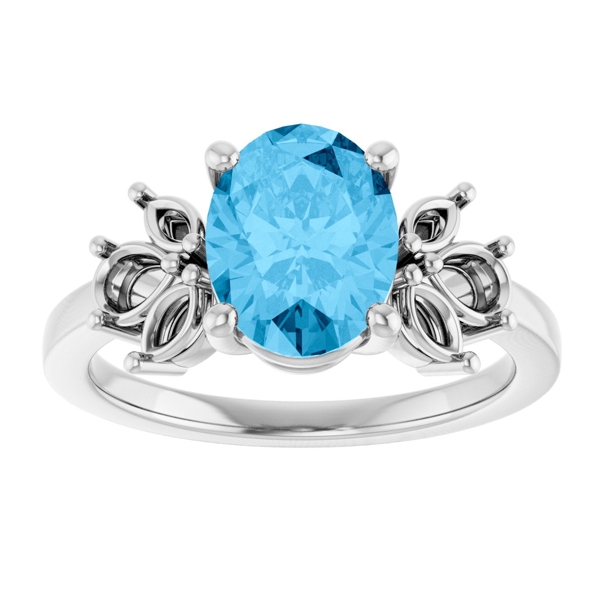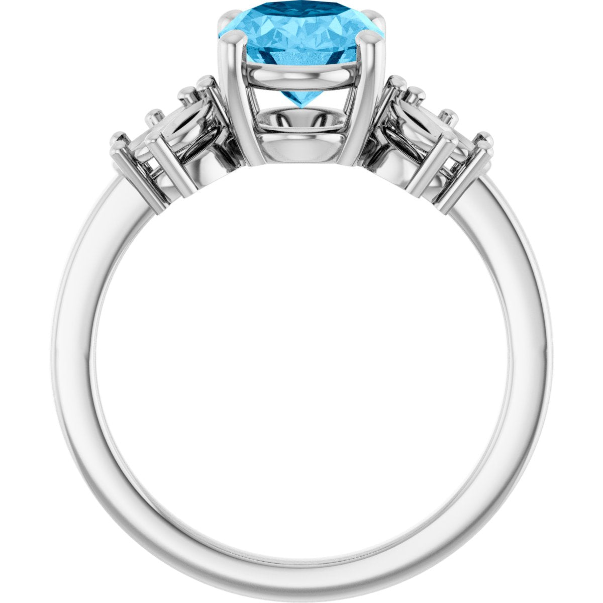 14K White Natural Aquamarine Ring