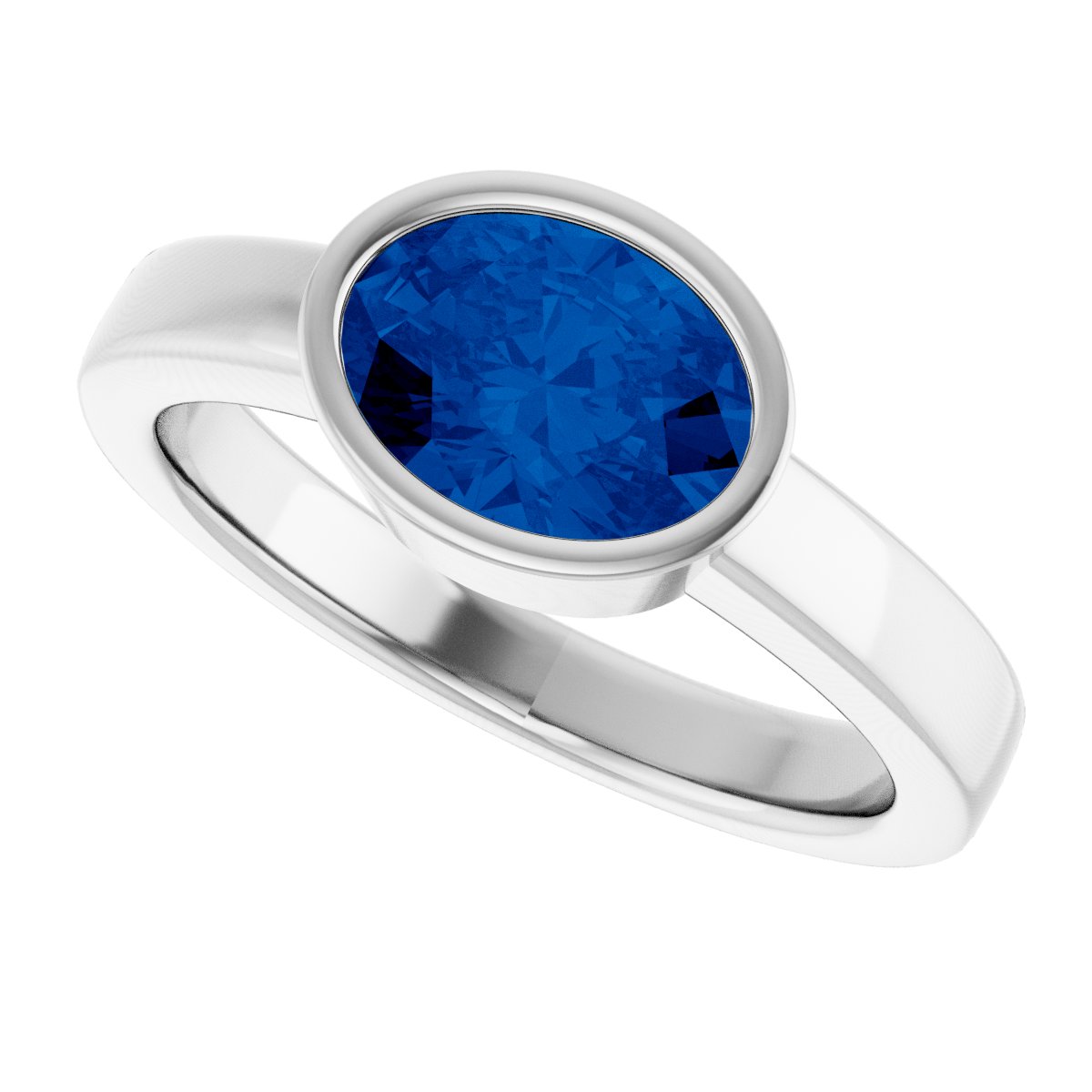 14K White Lab-Grown Blue Sapphire Ring