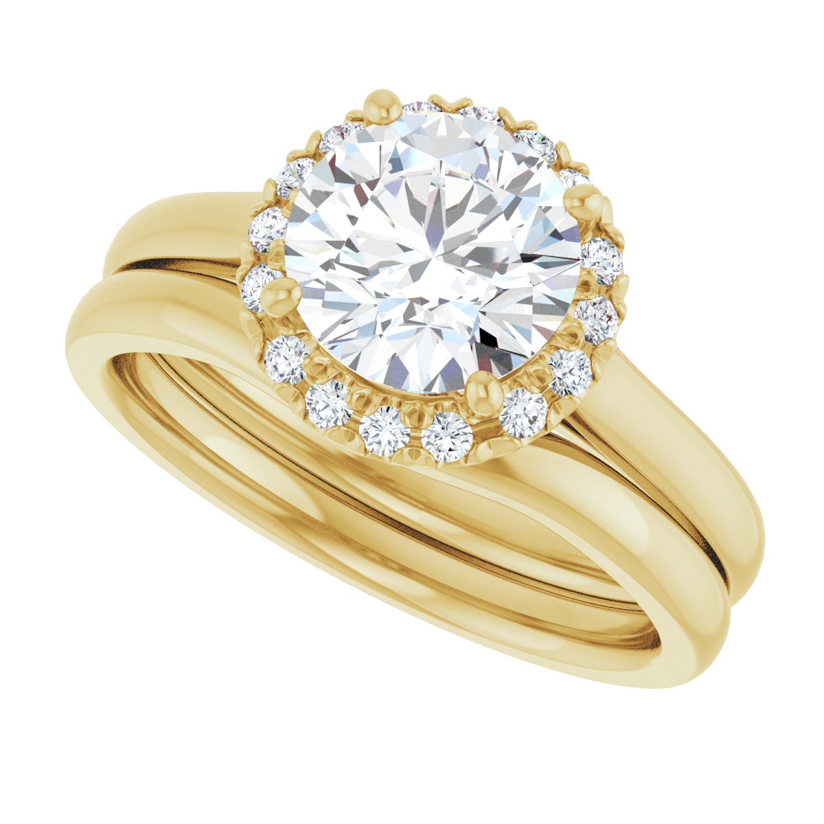 14K Yellow 7.4 mm Round 1/8 CTW Lab-Grown Diamond Semi-Set Engagement Ring