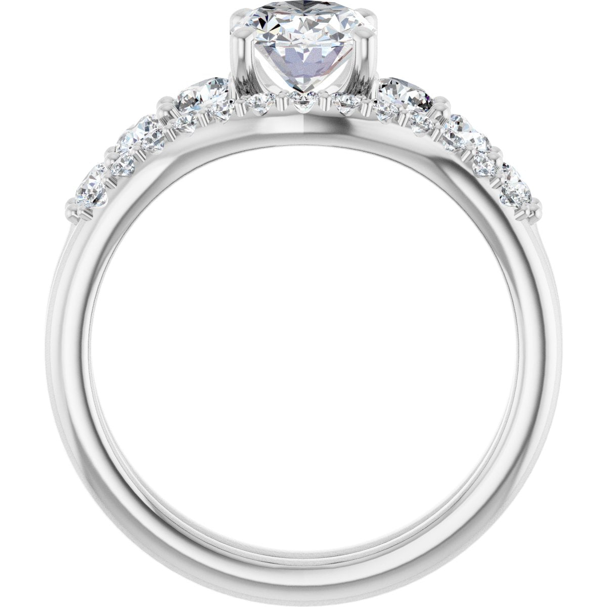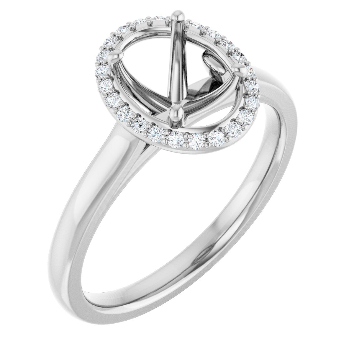 14K White 9x7 mm Oval 1/10 CTW Lab-Grown Diamond Semi-Set Engagement Ring