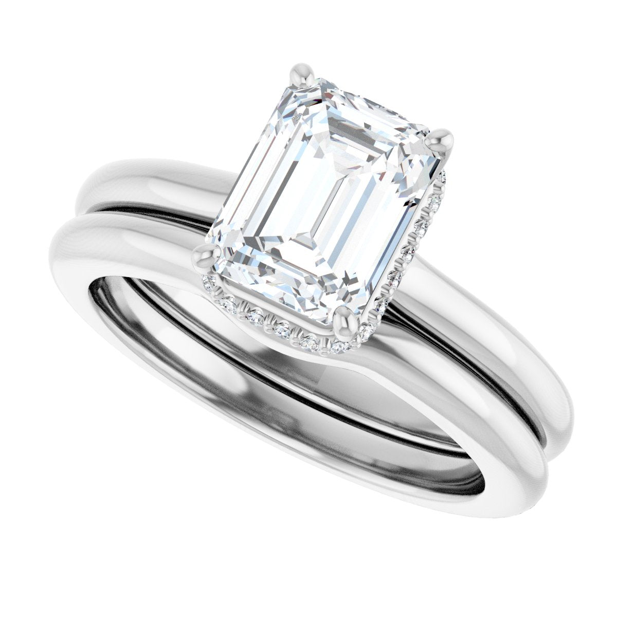 14K White 8x6 mm Emerald .06 CTW Lab-Grown Diamond Semi-Set Engagement Ring