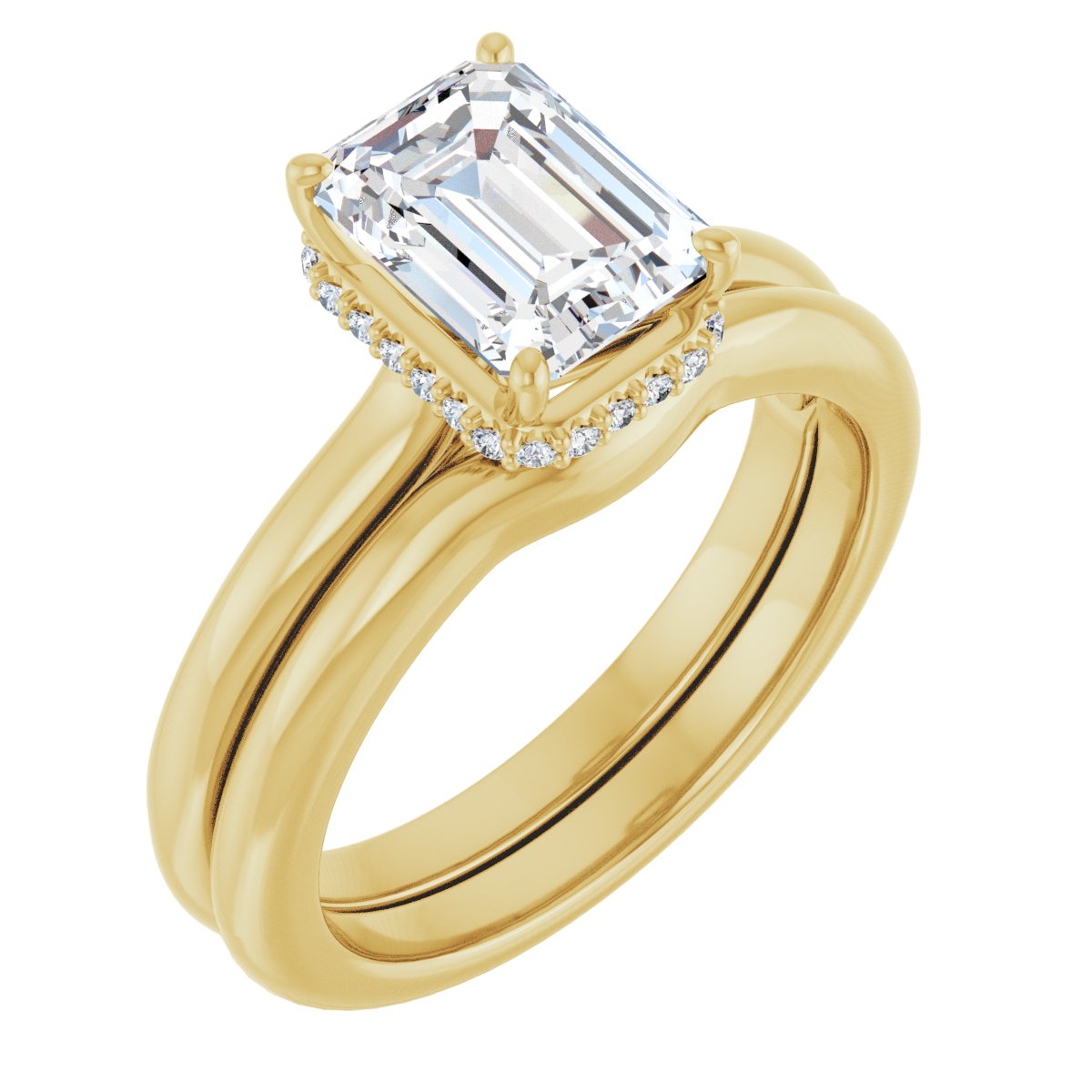 14K Yellow 8x6 mm Emerald .06 CTW Lab-Grown Diamond Semi-Set Engagement Ring
