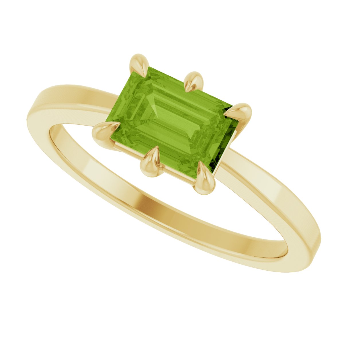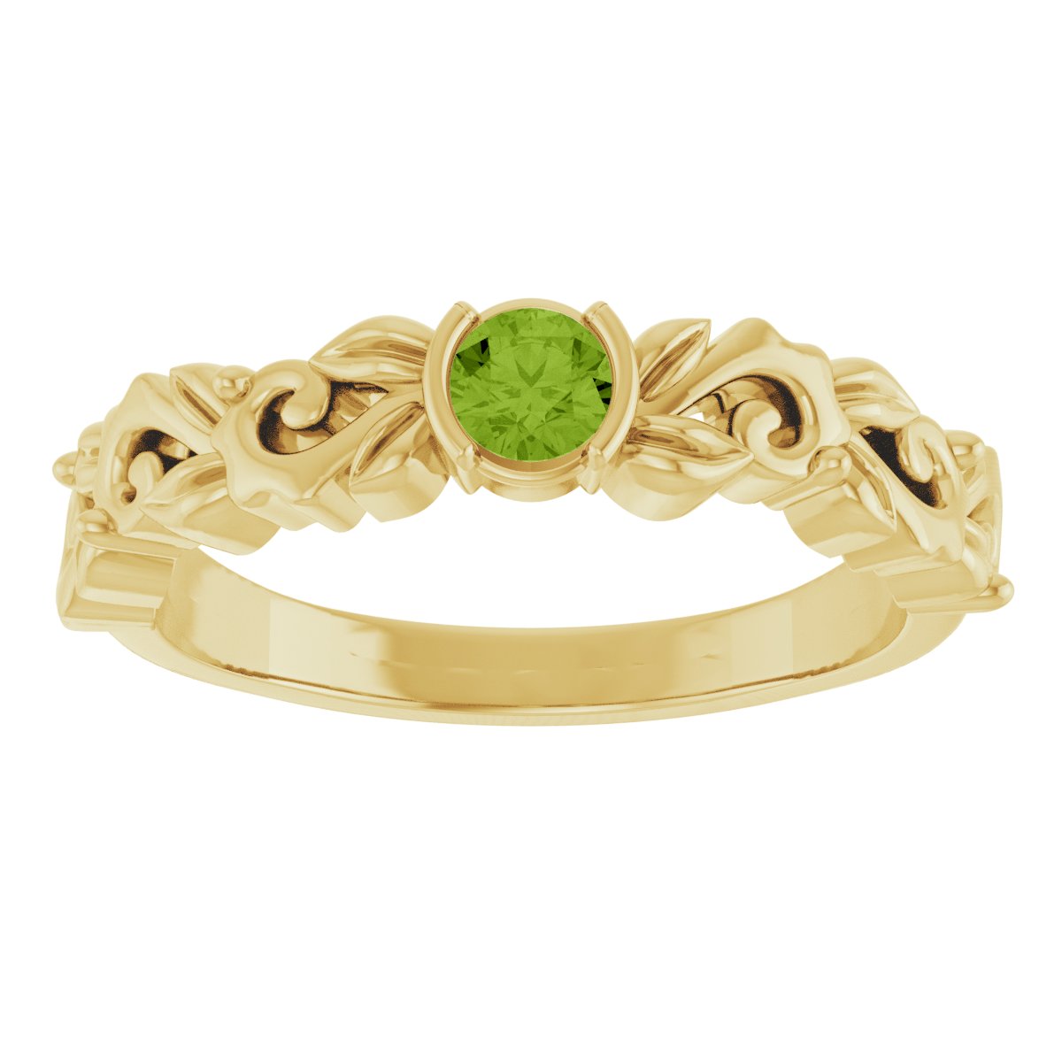 14K Yellow Cabochon Natural Peridot Stackable Ring