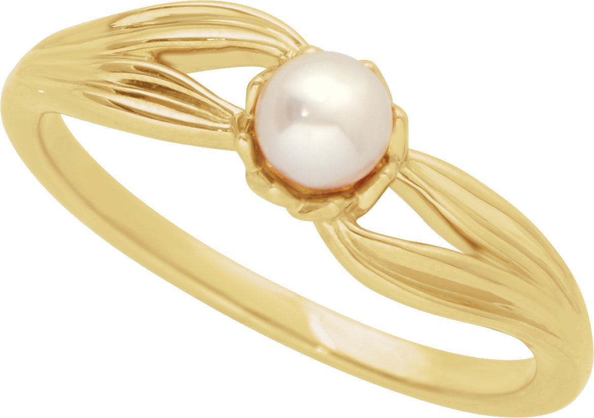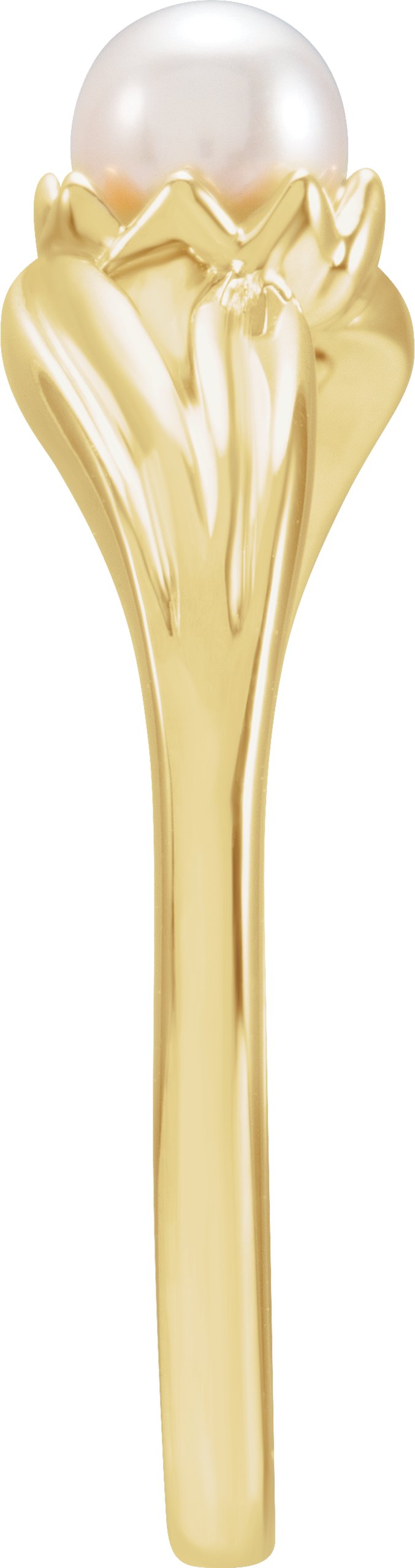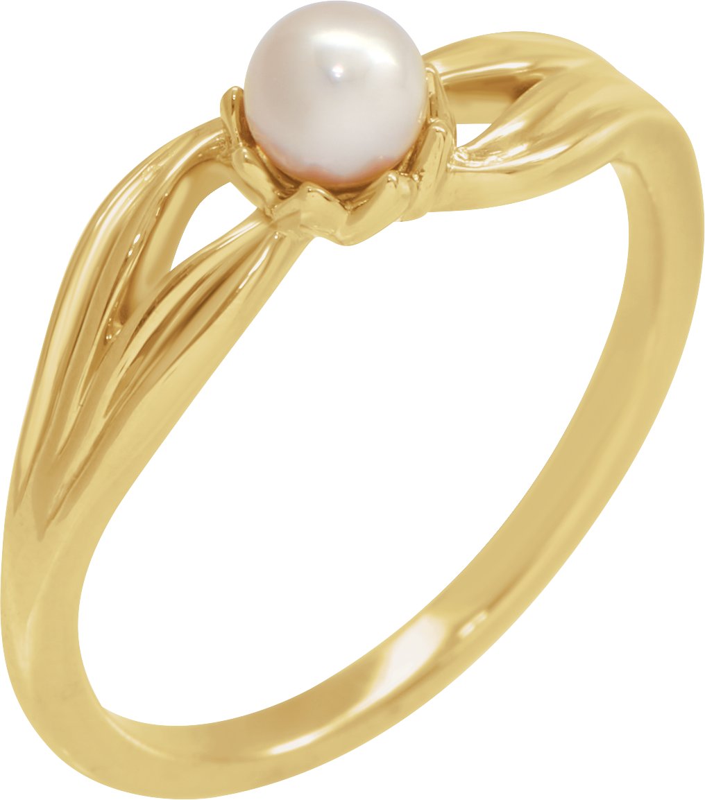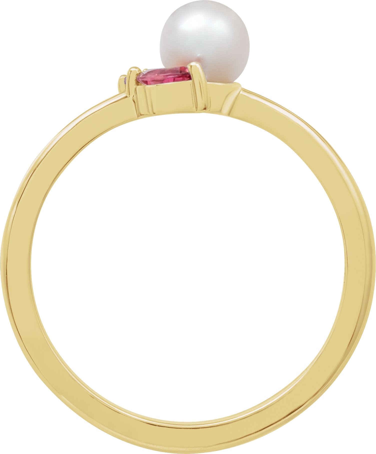 14K Yellow Cultured White Akoya Pearl, Natural Pink Tourmaline & Natural Pink Sapphire Ring