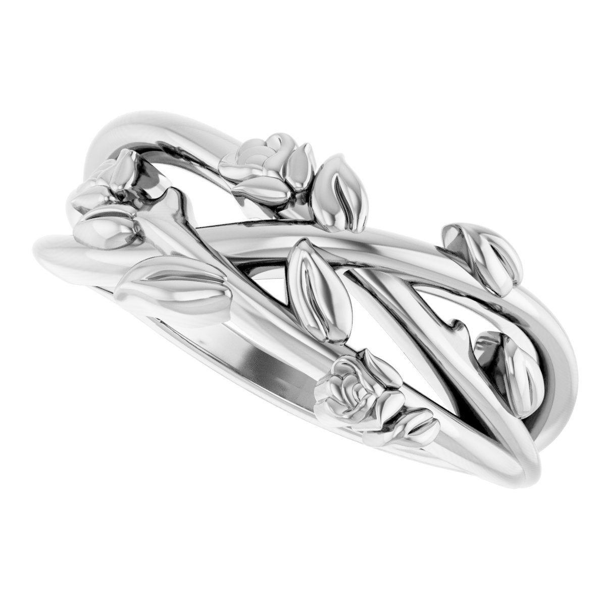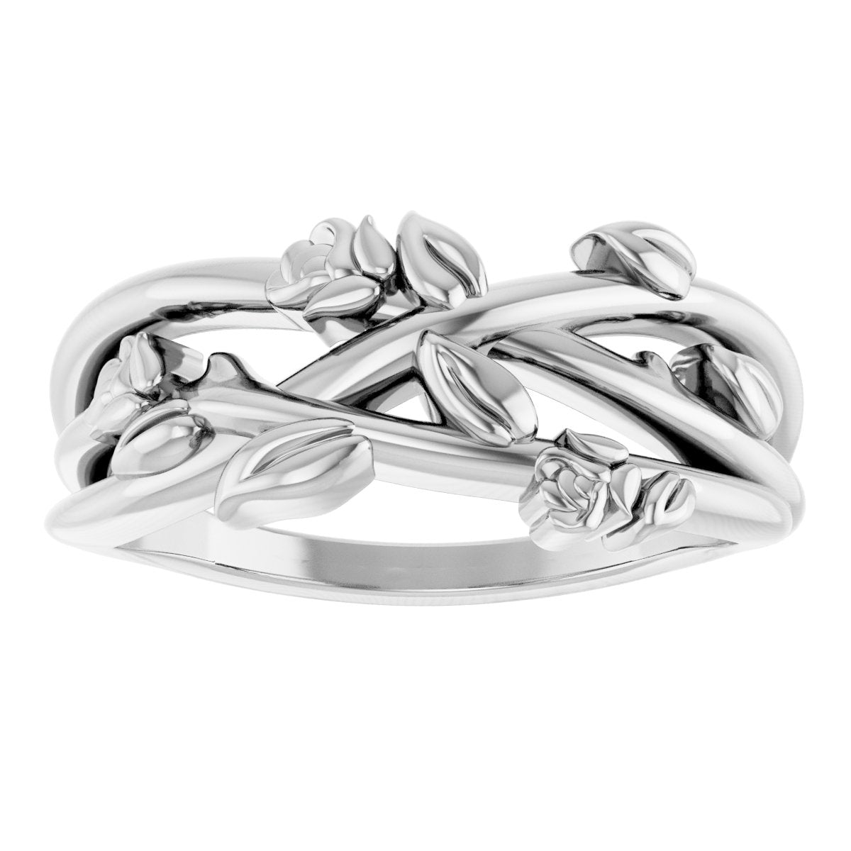 14K White .05 CTW Natural Diamond Vintage-Inspired Contour Band