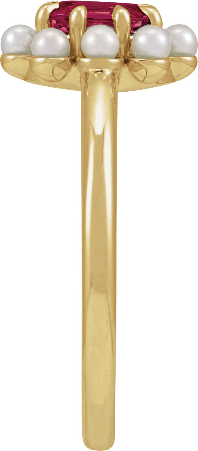 14K Yellow Natural Rhodolite Garnet & Cultured White Seed Pearl Halo-Style Ring