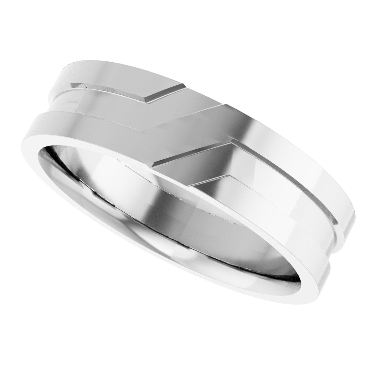 14K White 6 mm Grooved Comfort-Fit Flat Band Size 9.5