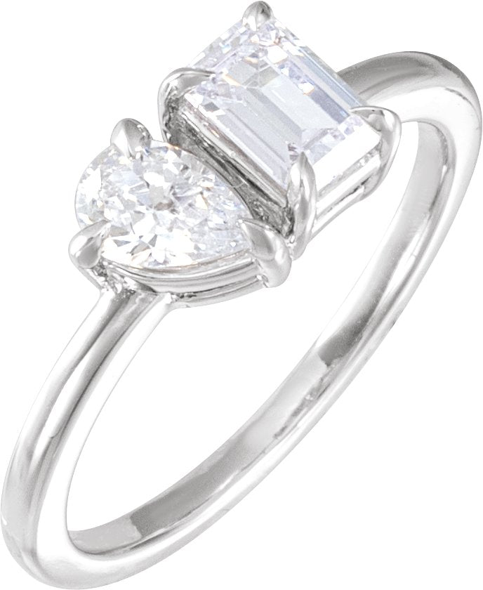14K White 1 CTW Lab-Grown Diamond Two-Stone Ring