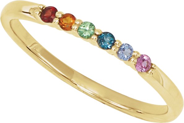 14K Yellow Natural Multi-Gemstone Rainbow Stackable Ring