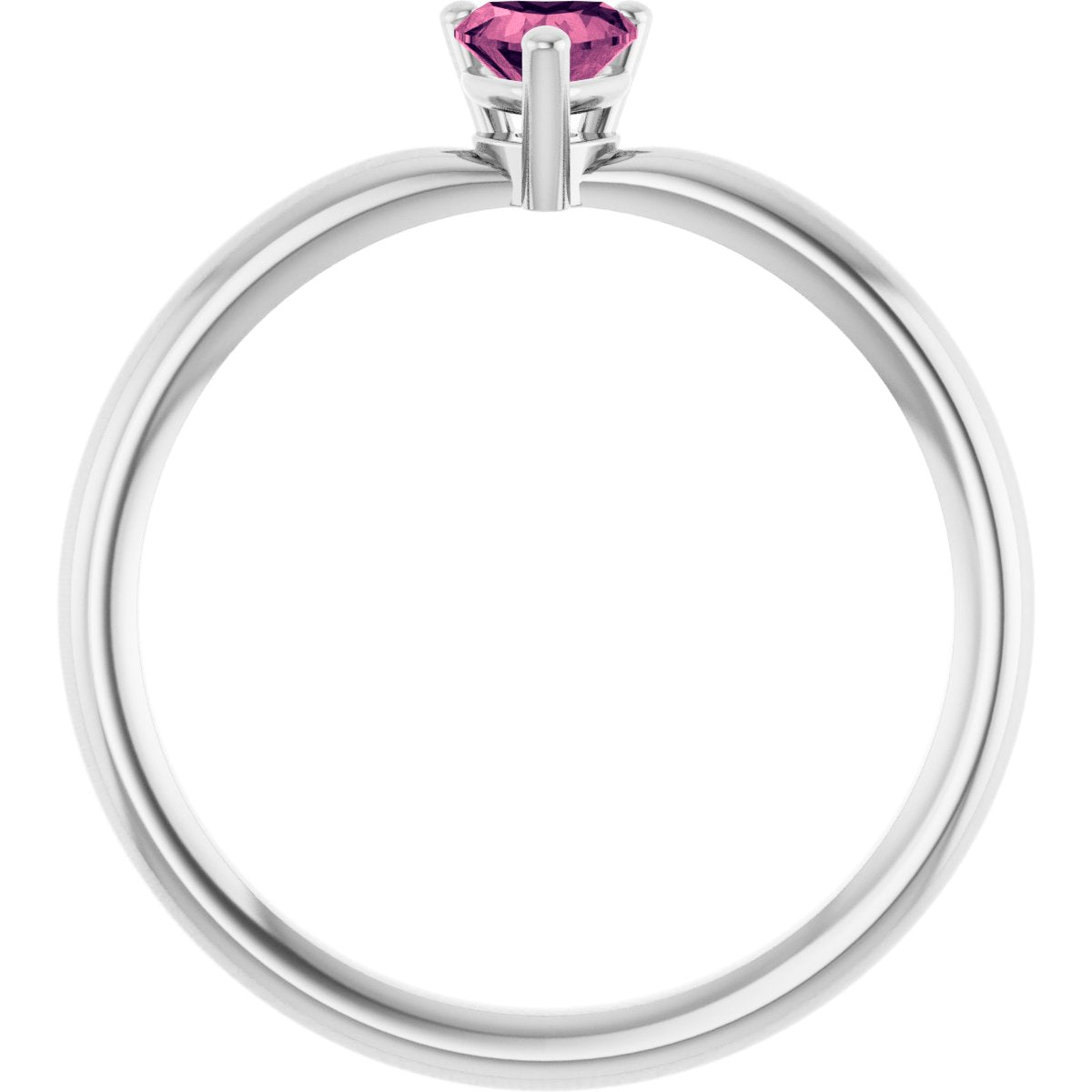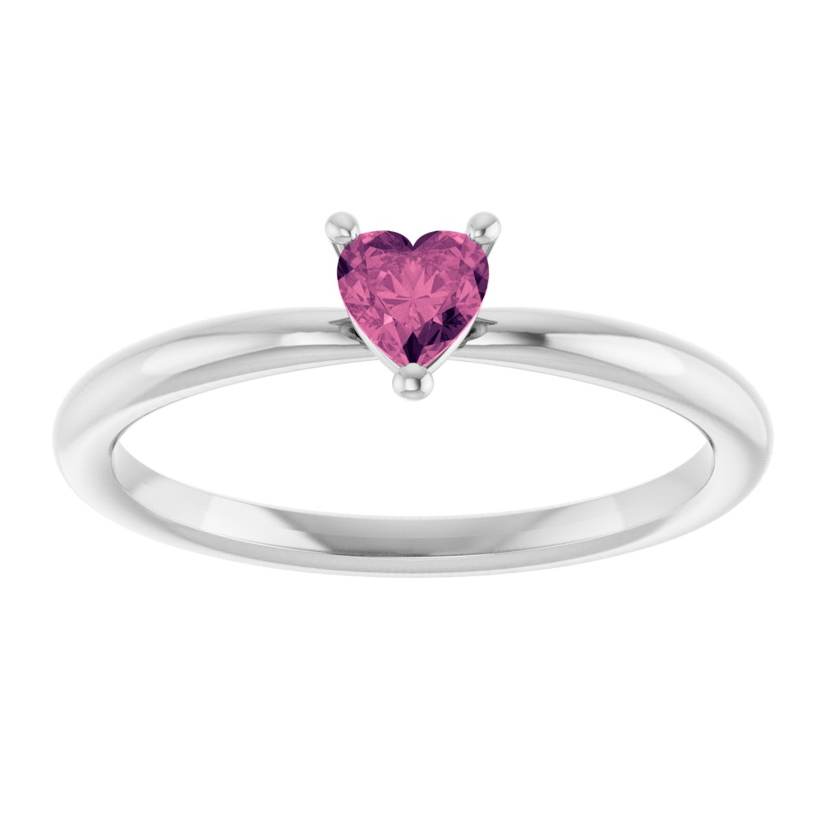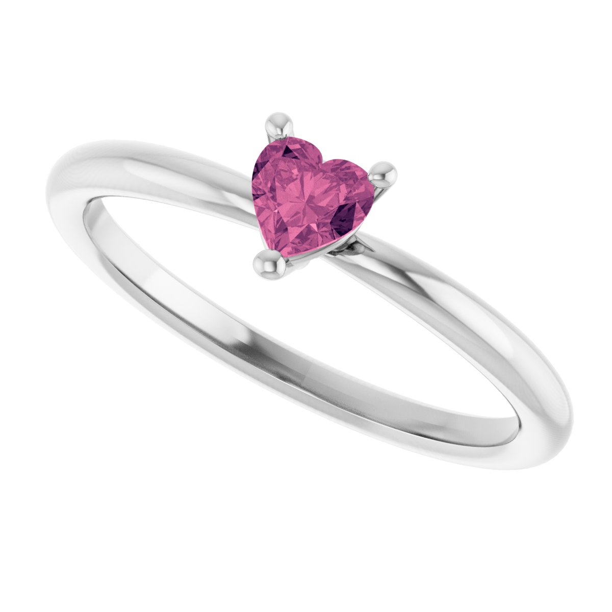 Sterling Silver Natural Pink Tourmaline Heart Solitaire Ring