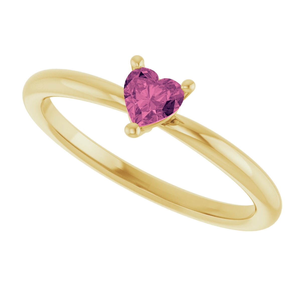 14K Yellow Natural Pink Tourmaline Heart Solitaire Ring