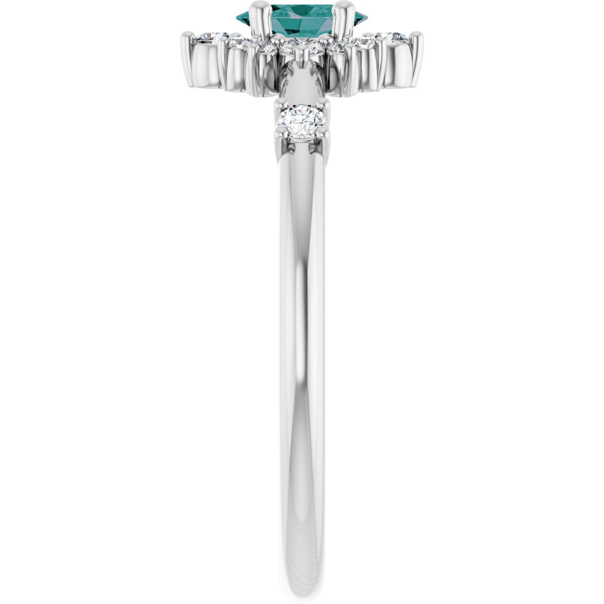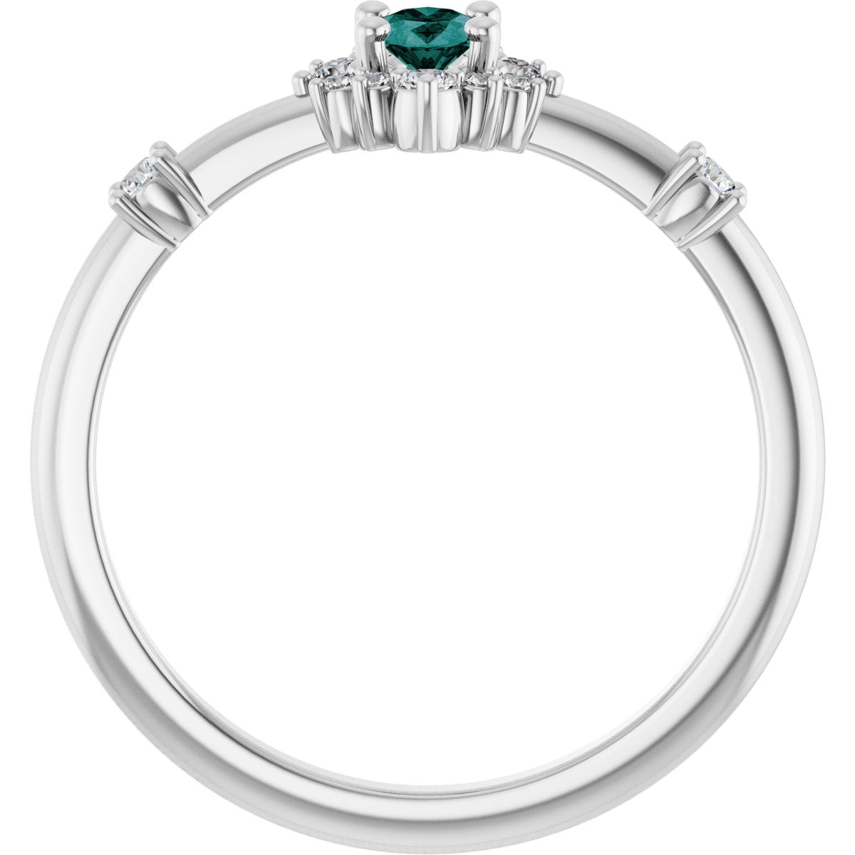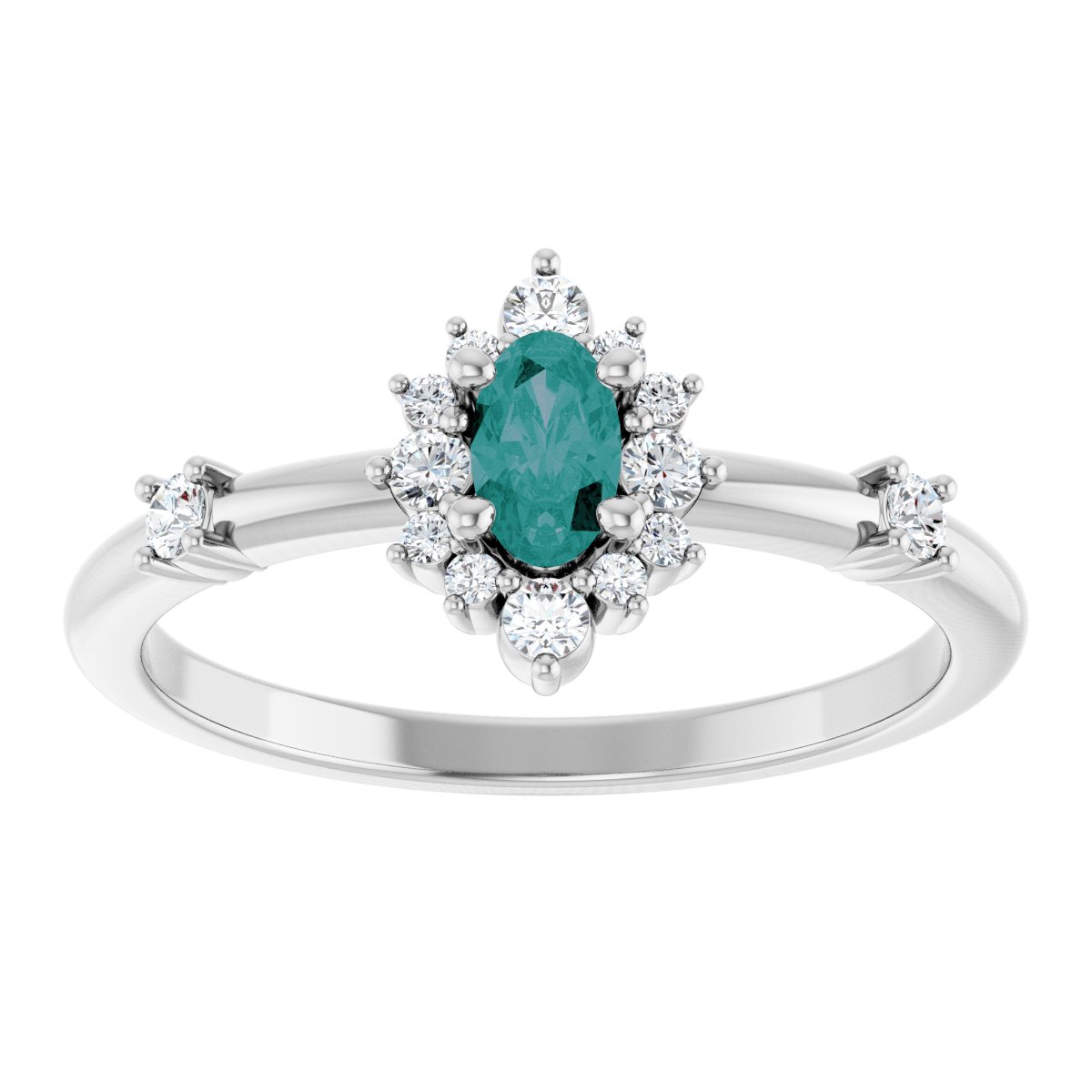 14K White Lab-Grown Alexandrite & 1/6 CTW Natural Diamond Halo-Style Ring