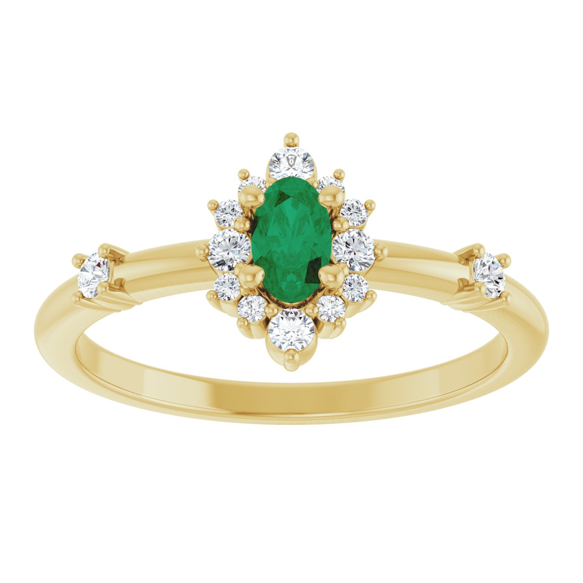 14K Yellow Natural Emerald & 1/6 CTW Natural Diamond Halo-Style Ring