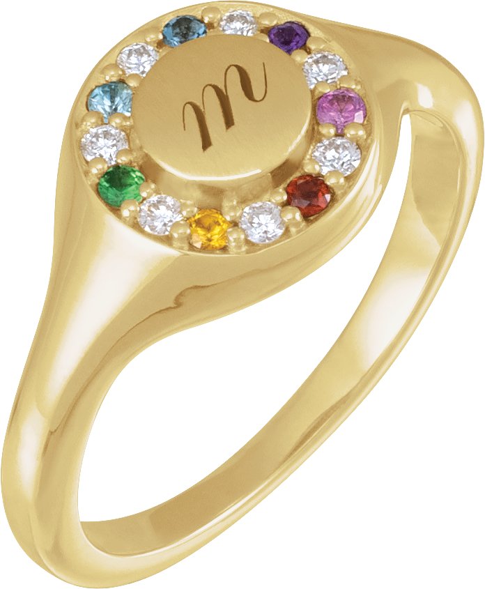 14K Yellow Natural Multi-Gemstone & 1/10 CTW Natural Diamond Halo-Style Signet Ring