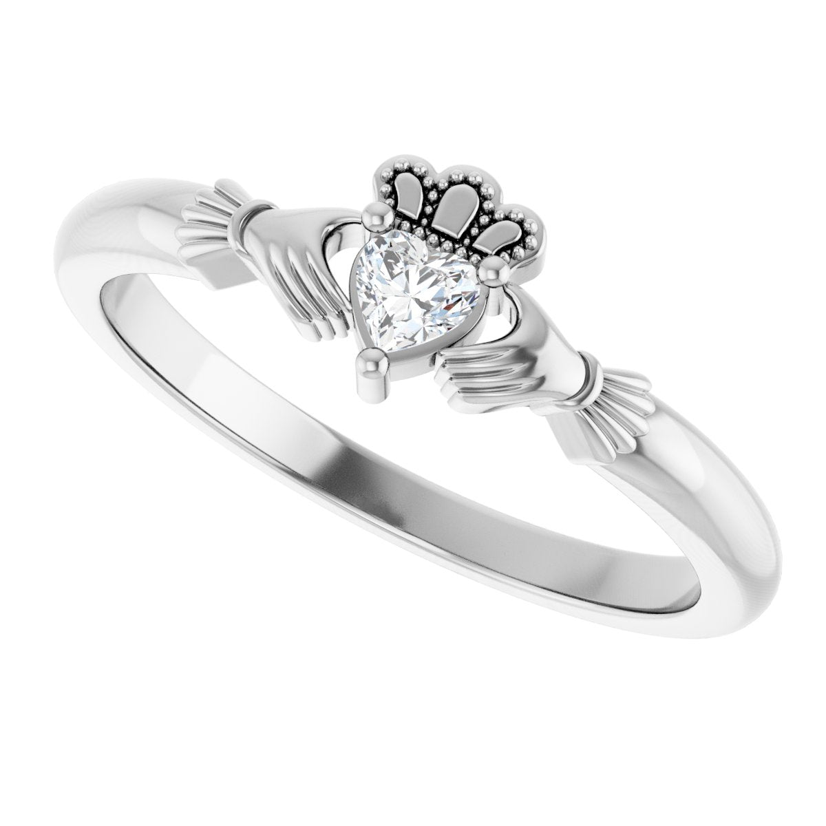 14K White Stuller Lab-Grown Moissanite™ Claddagh Ring