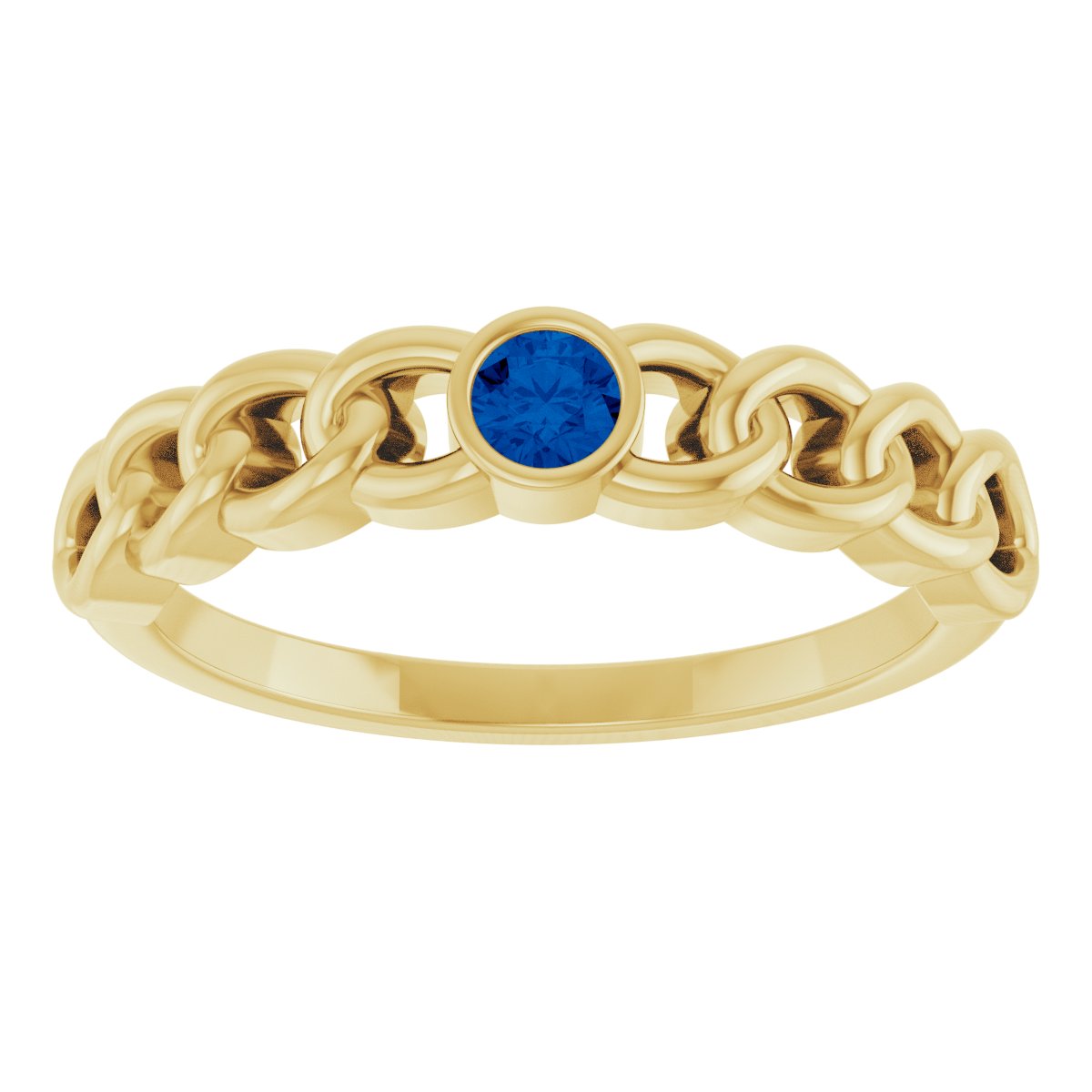 14K Yellow Natural Blue Sapphire Curb Chain Ring