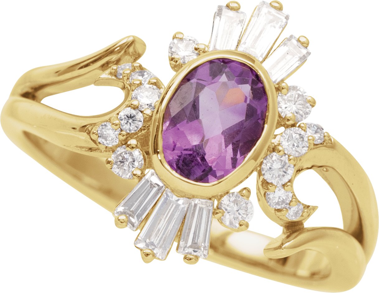 14K Yellow Natural Amethyst & 1/2 CTW Natural Diamond Halo-Style Ring