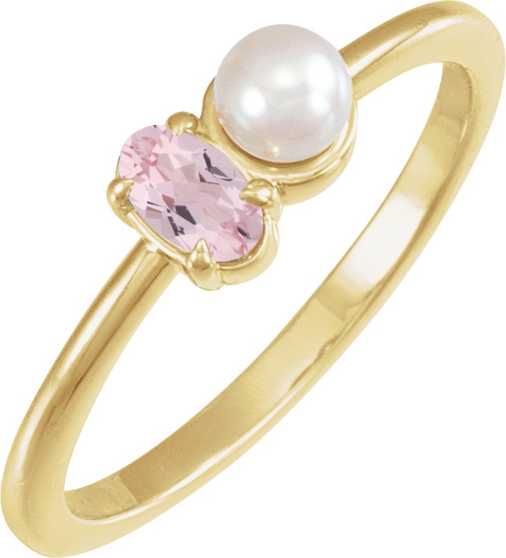 14K Yellow Natural Morganite & Cultured White Akoya Pearl Ring