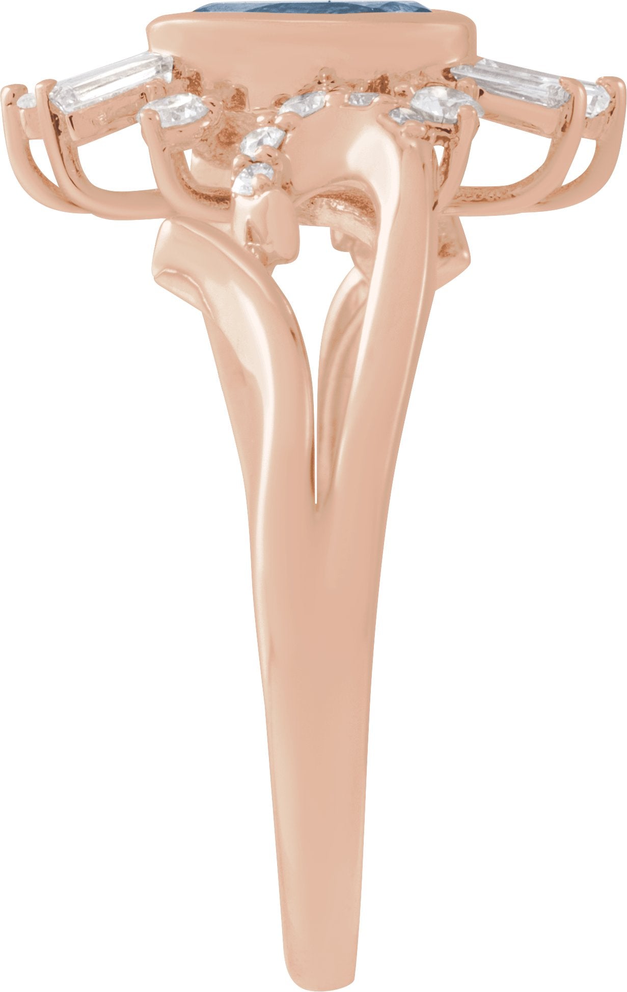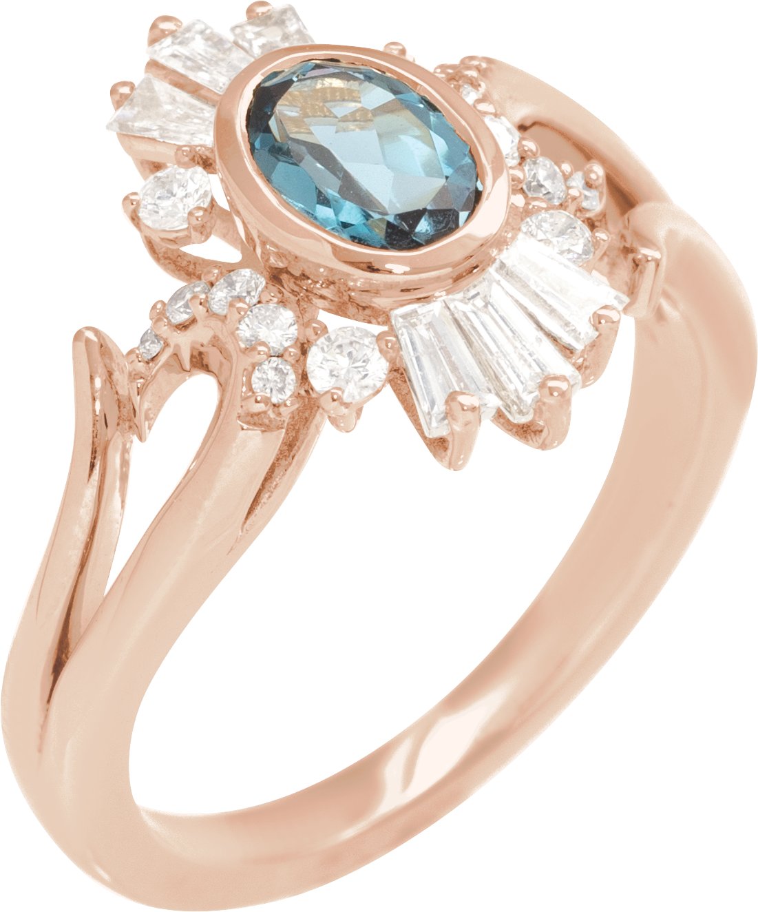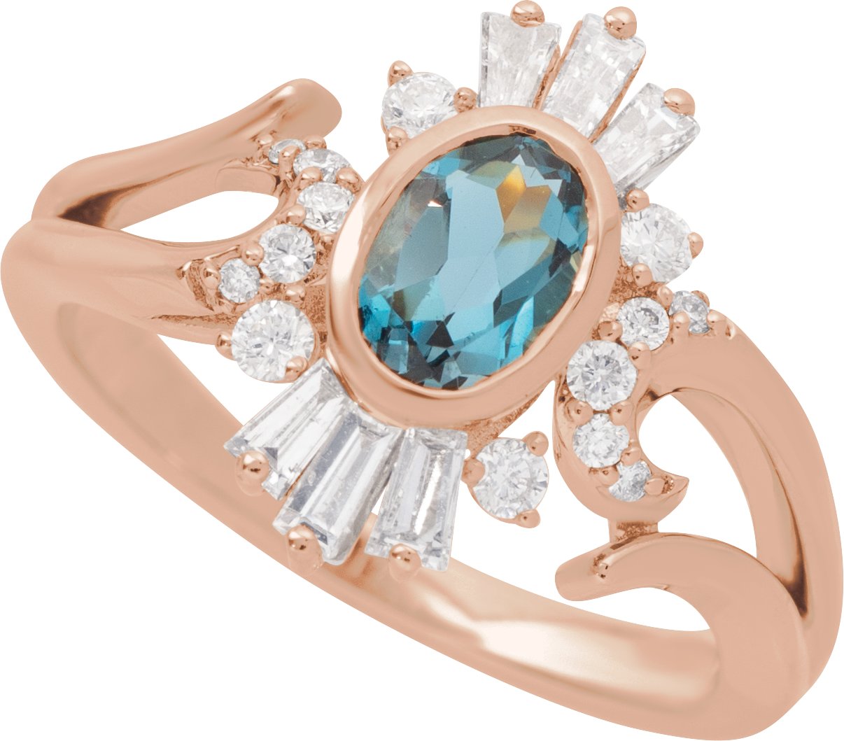 14K Rose Natural London Blue Topaz & 1/2 CTW Natural Diamond Halo-Style Ring
