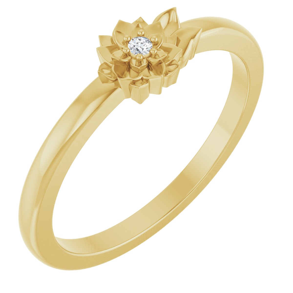 14K Yellow .015 CT Natural Diamond Flower Ring