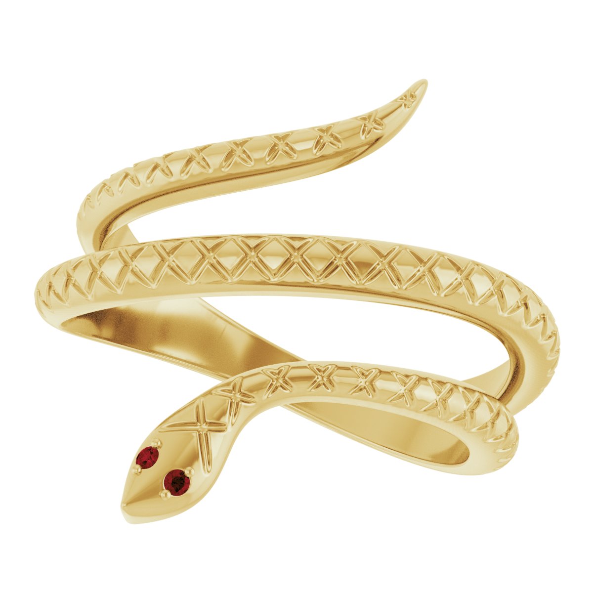 14K Yellow Natural Mozambique Garnet Snake Ring