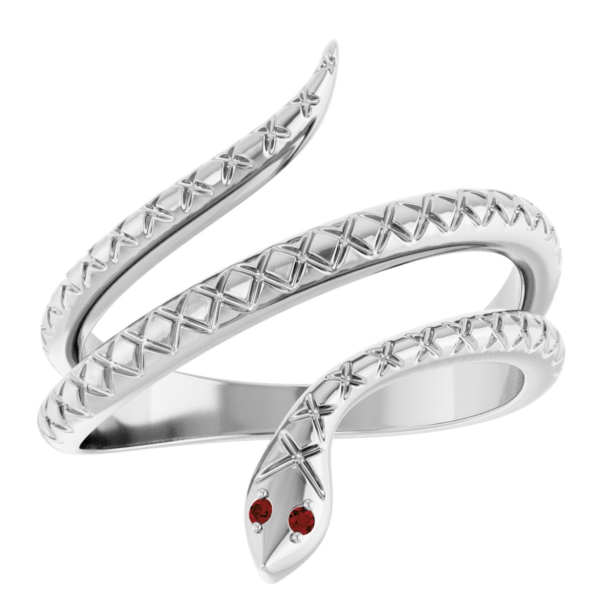 Sterling Silver Natural Mozambique Garnet Snake Ring