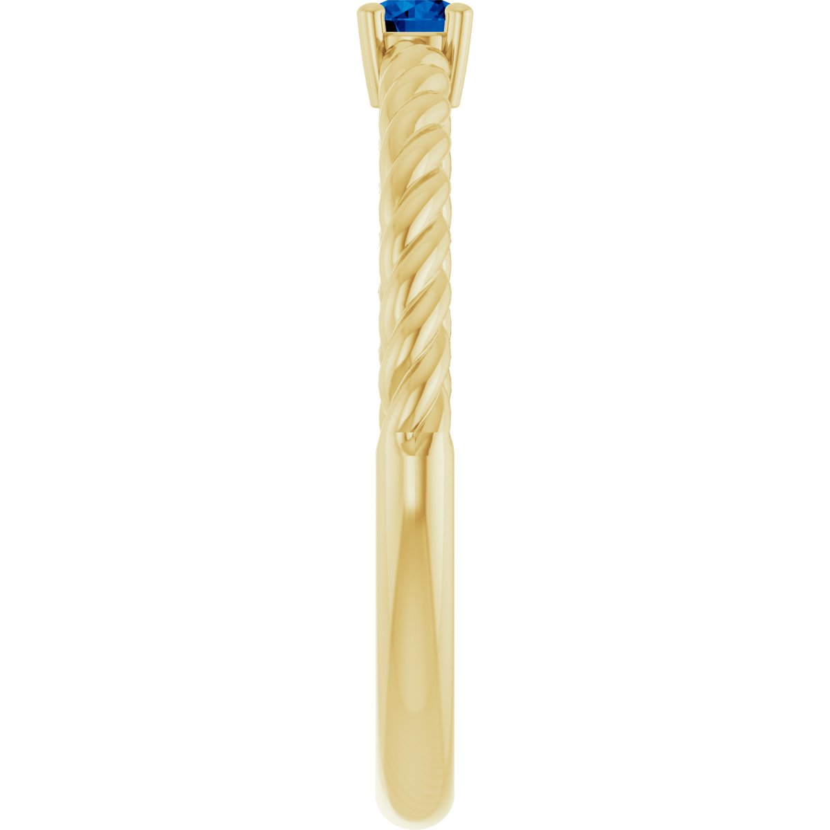 14K Yellow 3 mm Lab-Grown Blue Sapphire Solitaire Rope Ring