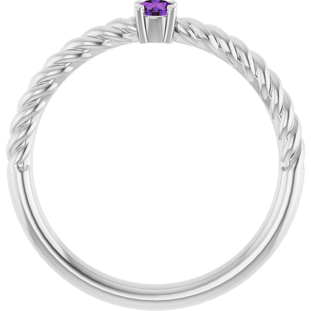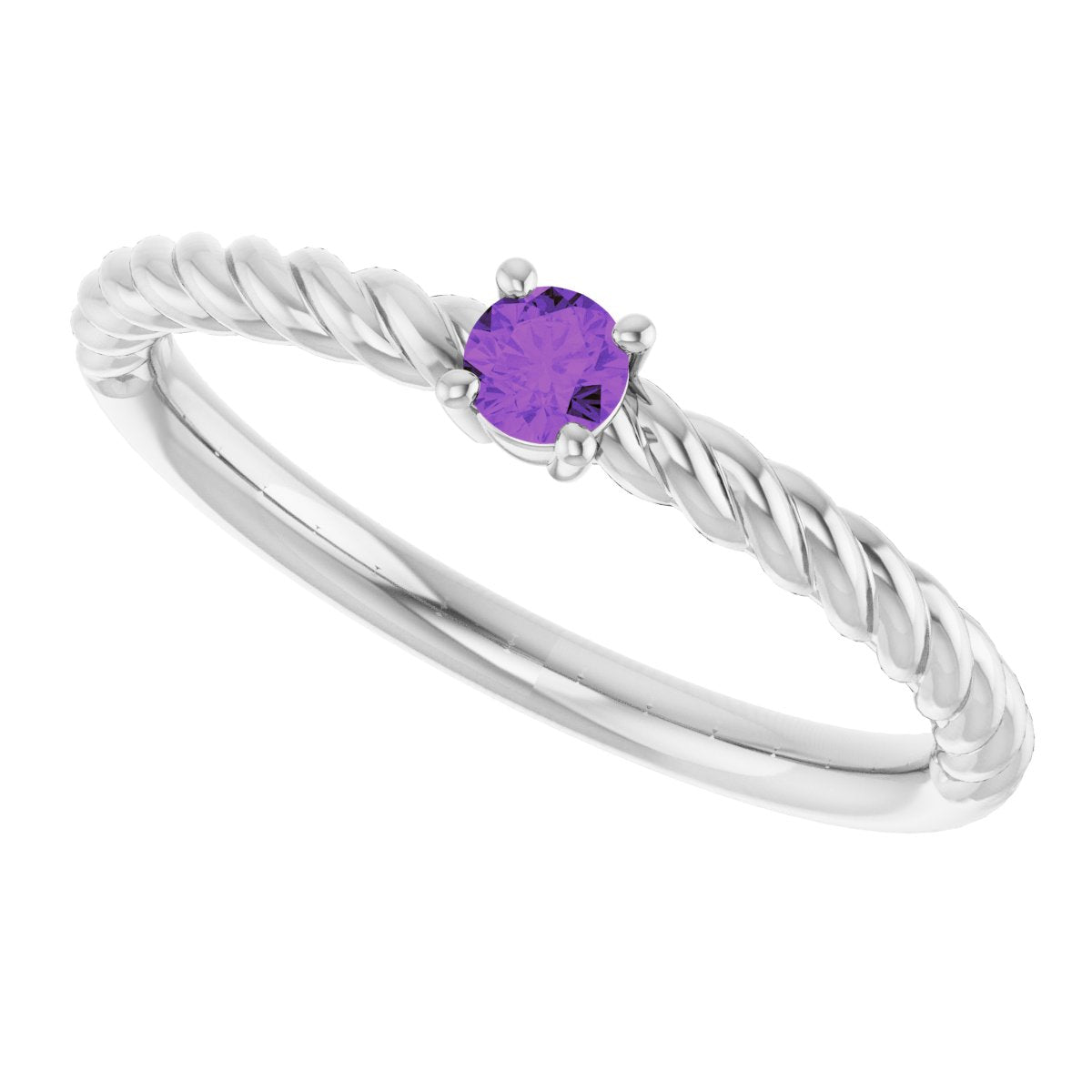 14K White 3 mm Natural Amethyst Solitaire Rope Ring