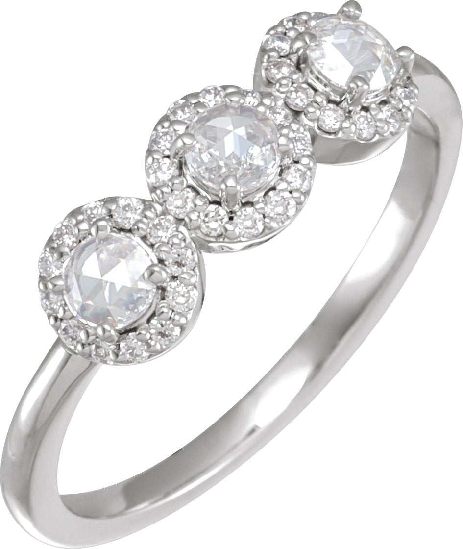 14K White 1/3 CTW Natural Rose-Cut Diamond & Faceted Anniversary Band