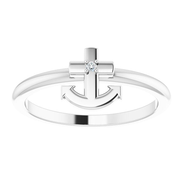 14K White .01 CT Natural Diamond Cross Anchor Ring
