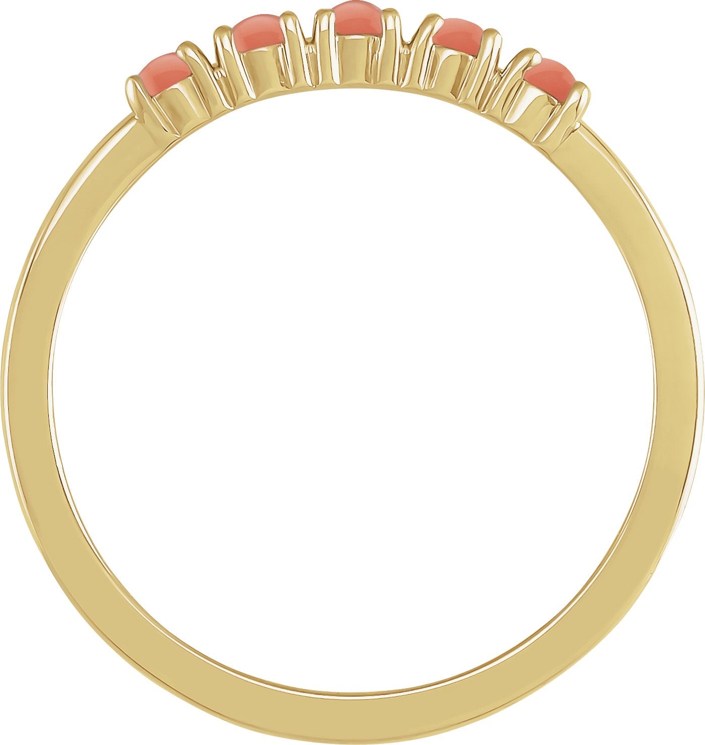 14K Yellow Natural Pink Coral Cabochon Stackable Ring