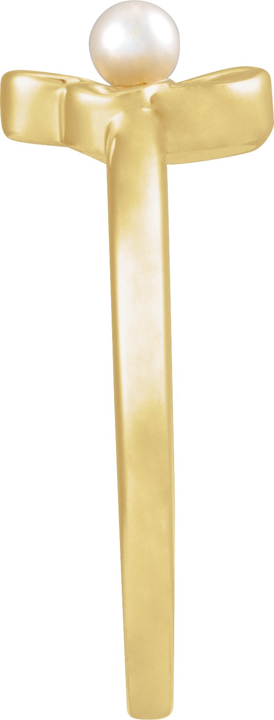 14K Yellow Cultured White Seed Pearl Floral Ring