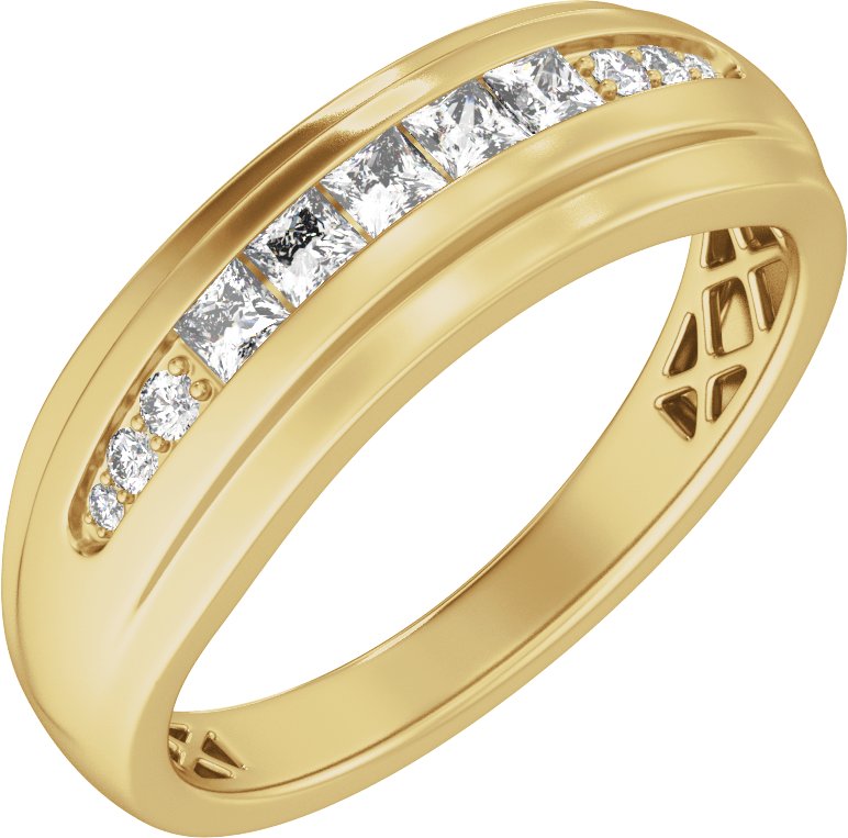 14K Yellow 1/2 CTW Natural Diamond Stepped-Edge Tapered Band