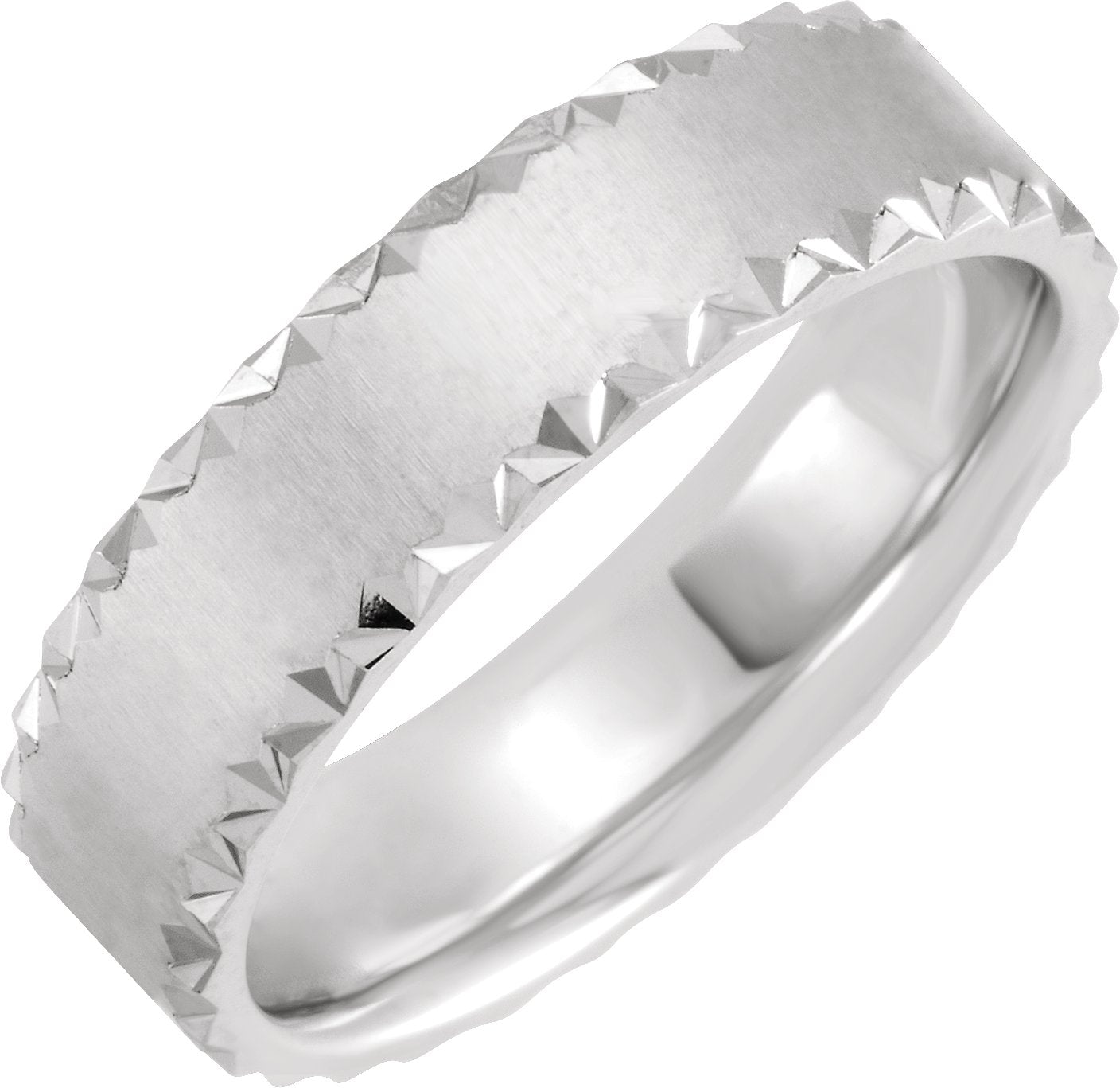 10K White 6 mm Geometric Faceted Edge Comfort-Fit Half Round Band Size 10.5