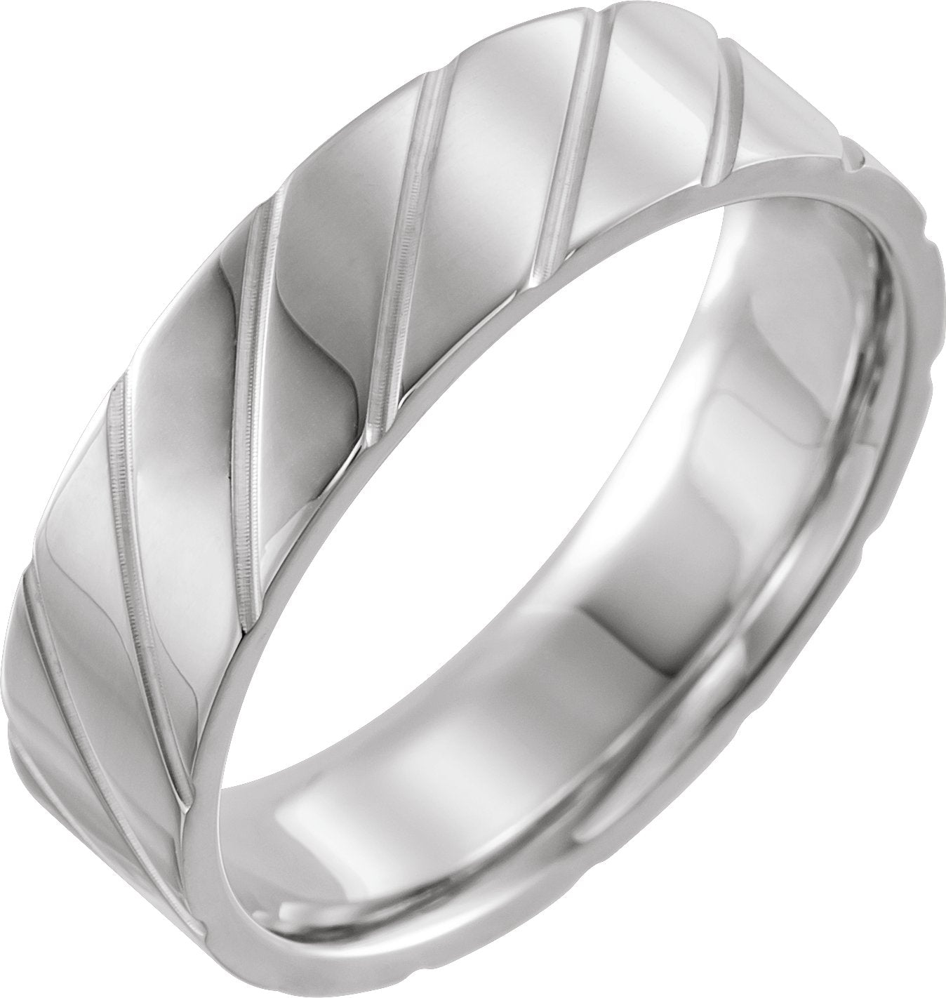 14K White 6 mm Diagonal Grooved Comfort-Fit Flat Band Size 10.5
