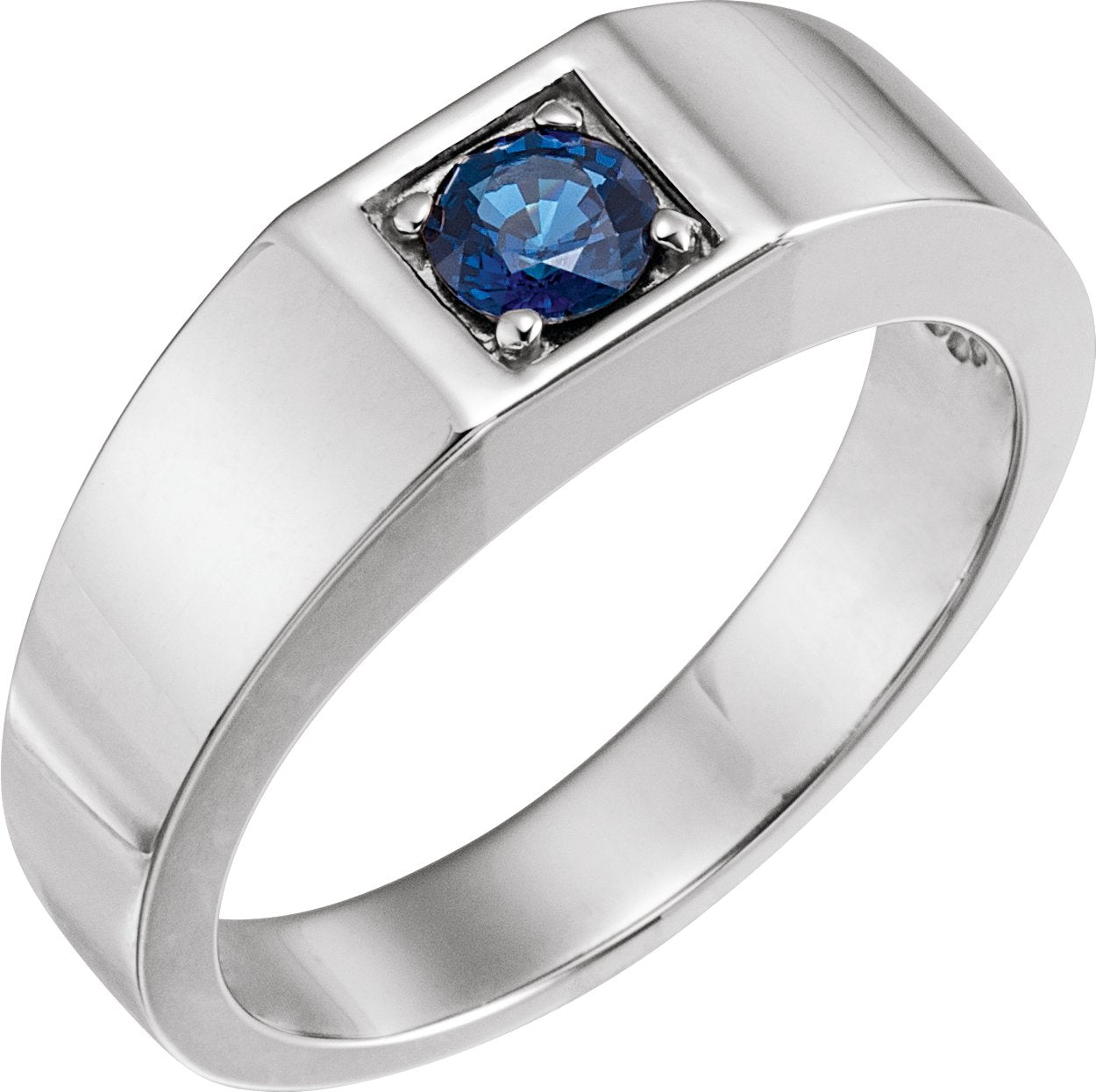 14K White Lab-Grown Blue Sapphire Scroll Setting® Ring