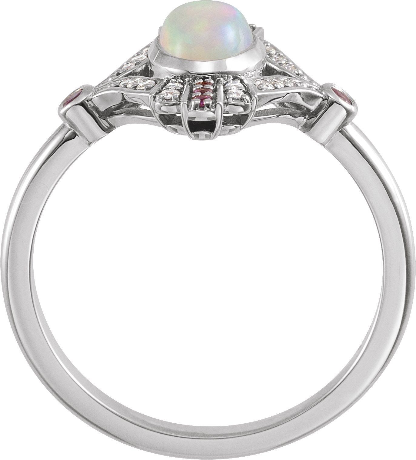 14K White Natural Ethiopian Opal, Natural Pink Sapphire & .06 CTW Natural Diamond Cabochon Ring