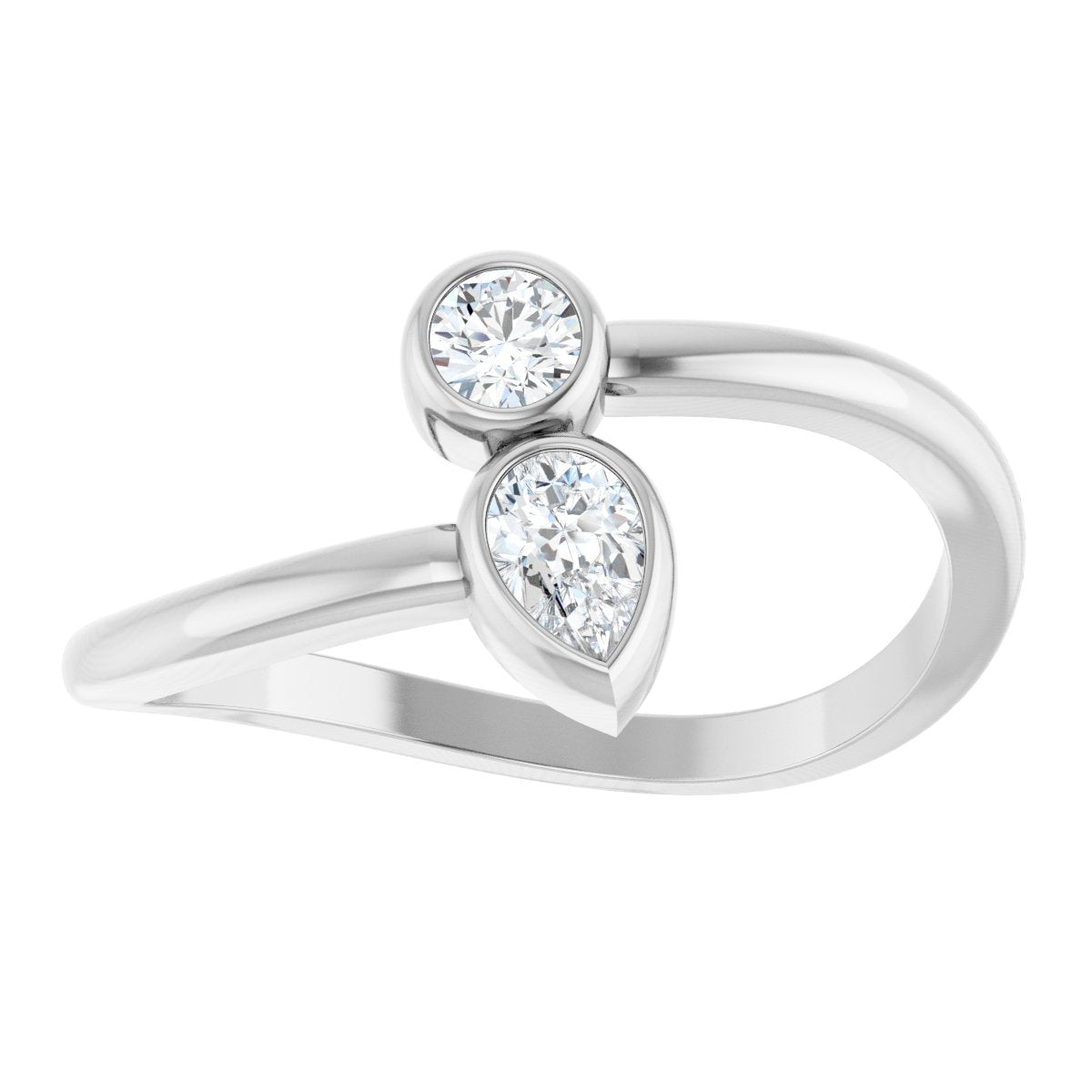 14K White 1/4 CTW Natural Diamond Two-Stone Bypass Ring