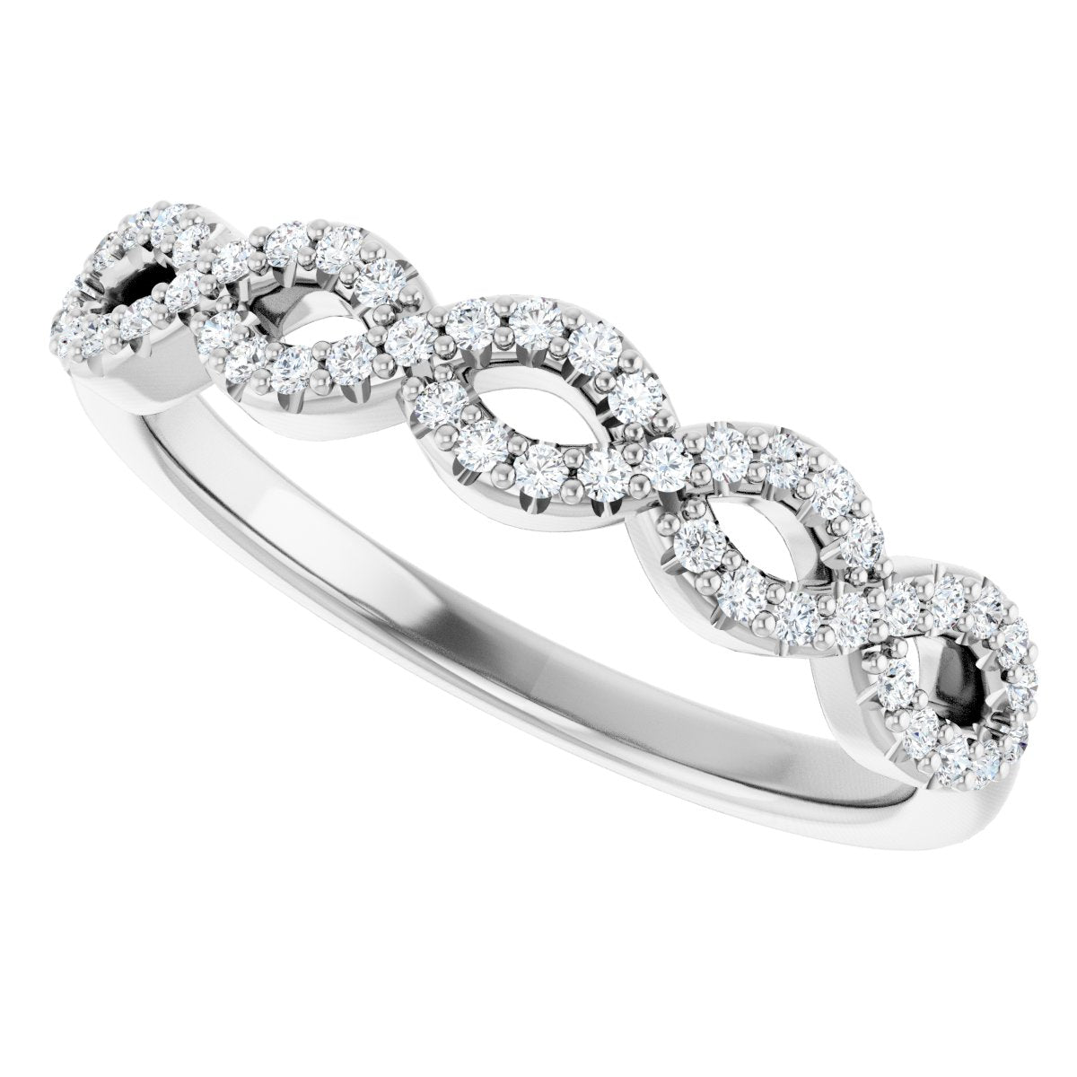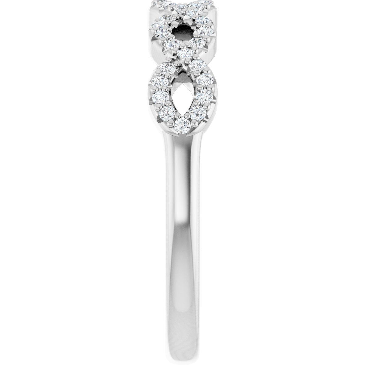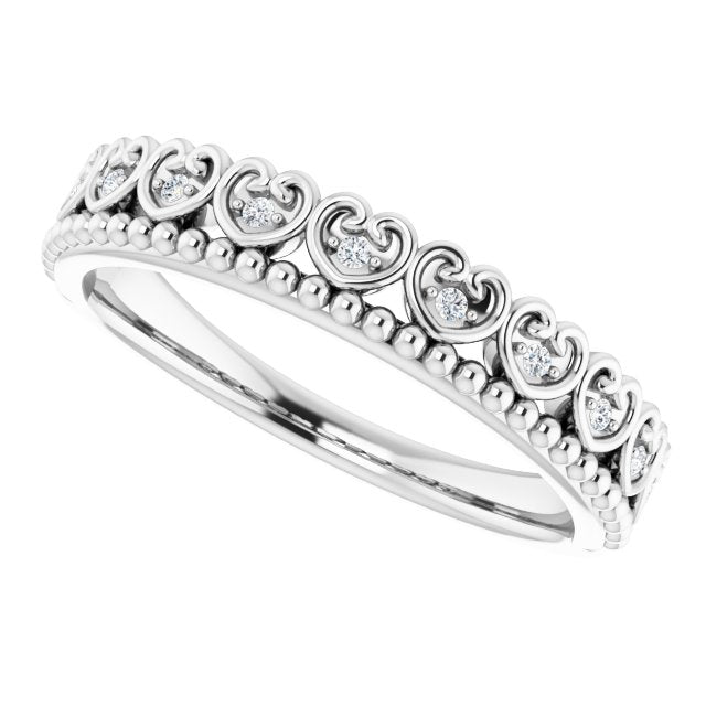 14K White .04 CTW Natural Diamond Stackable Beaded Heart Ring