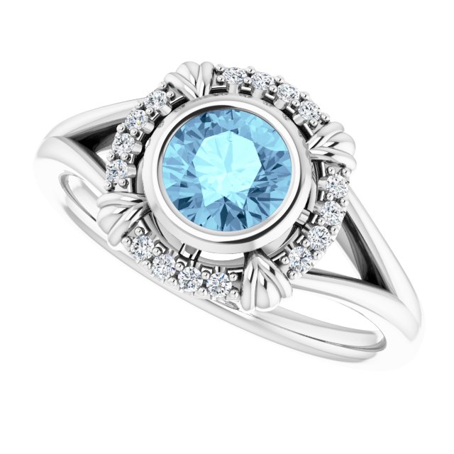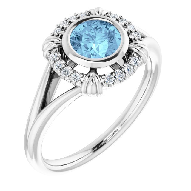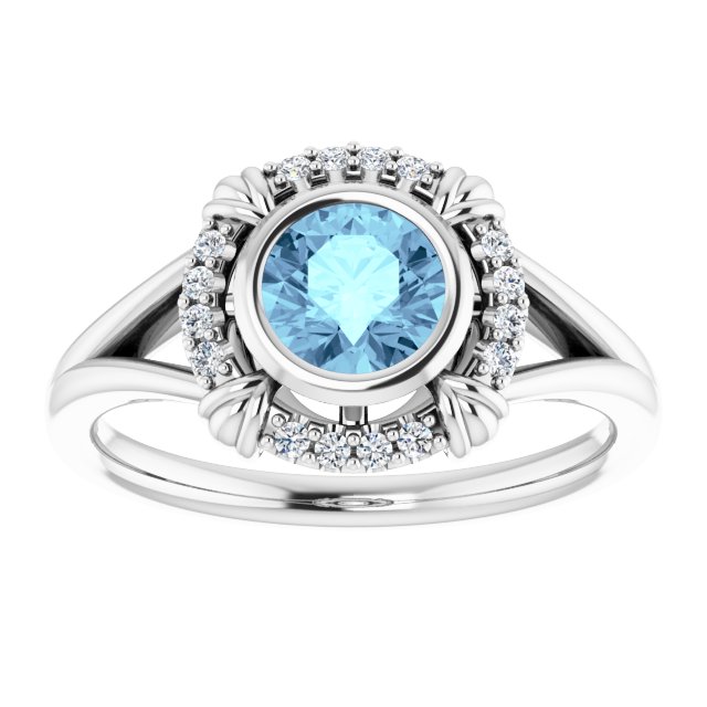 14K White Natural Aquamarine & .08 CTW Natural Diamond Ring