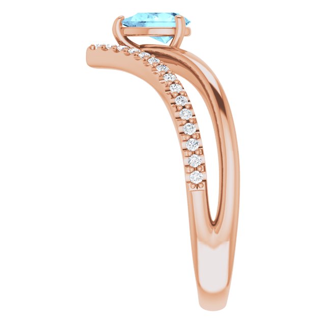 14K Rose Natural Aquamarine & 1/6 CTW Natural Diamond Ring