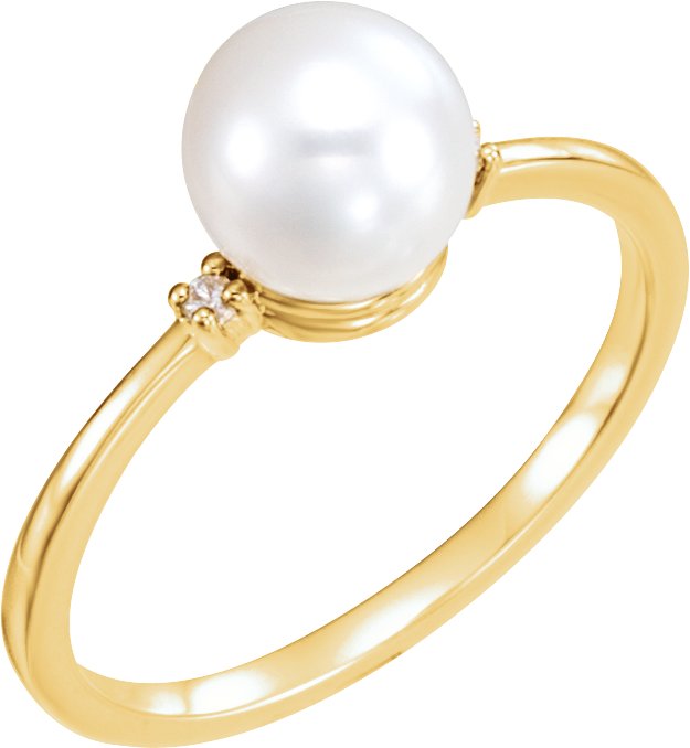 14K Yellow Cultured White Freshwater Pearl & .025 CTW Natural Diamond Ring