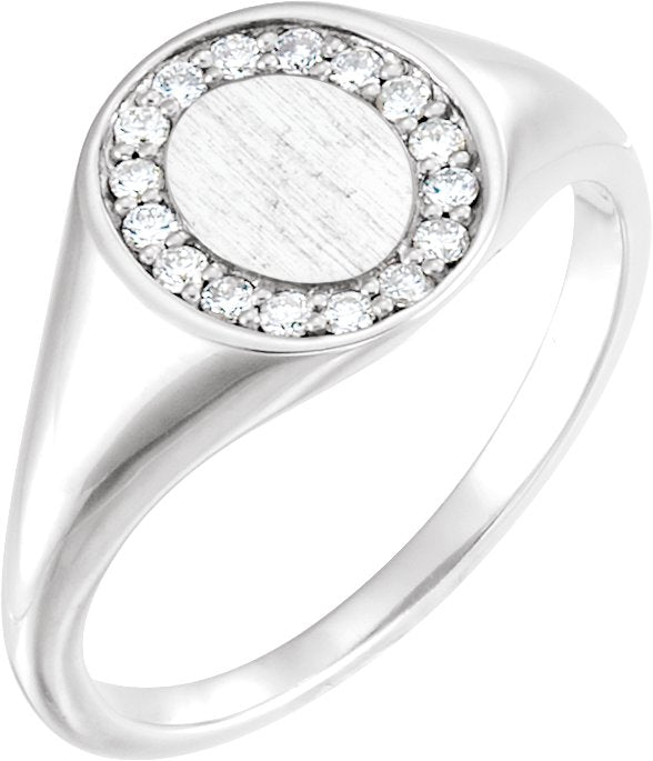 14K White 1/6 CTW Natural Diamond Halo-Style Signet Ring