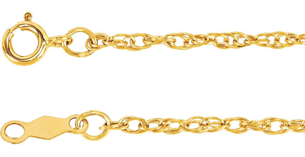 14K Yellow 1.5 mm Rope 7" Chain