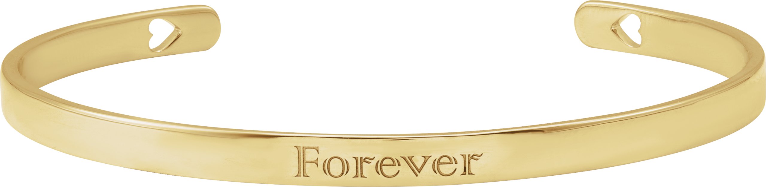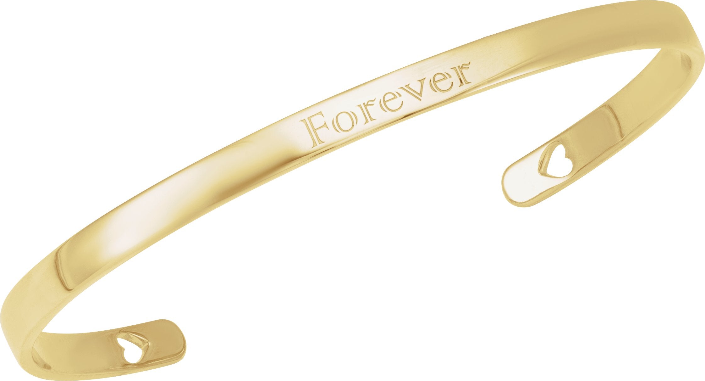 14K Yellow Engravable Heart Pierced Cuff 7" Bracelet
