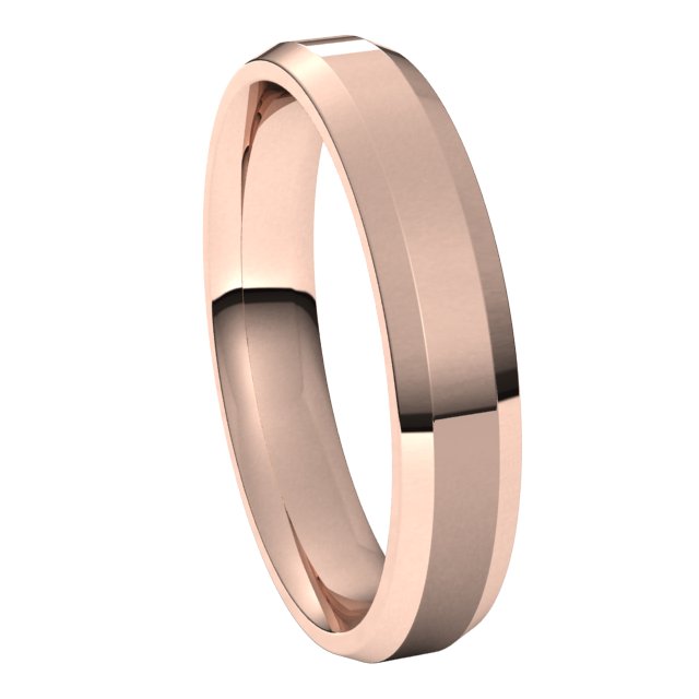 18K Rose 4 mm Lightweight Beveled-Edge Comfort-Fit Flat Band Size 10