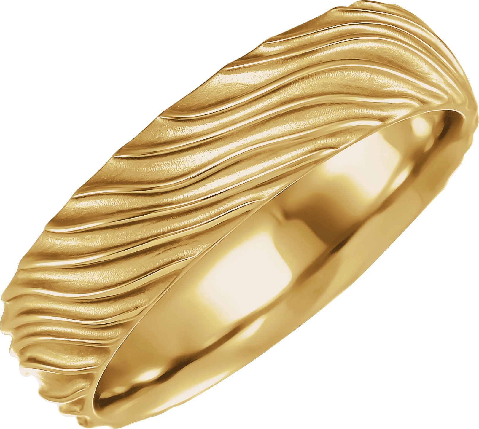14K Yellow 6 mm Milgrain Stepped-Edge Herringbone Pattern Half Round Band Size 7.5