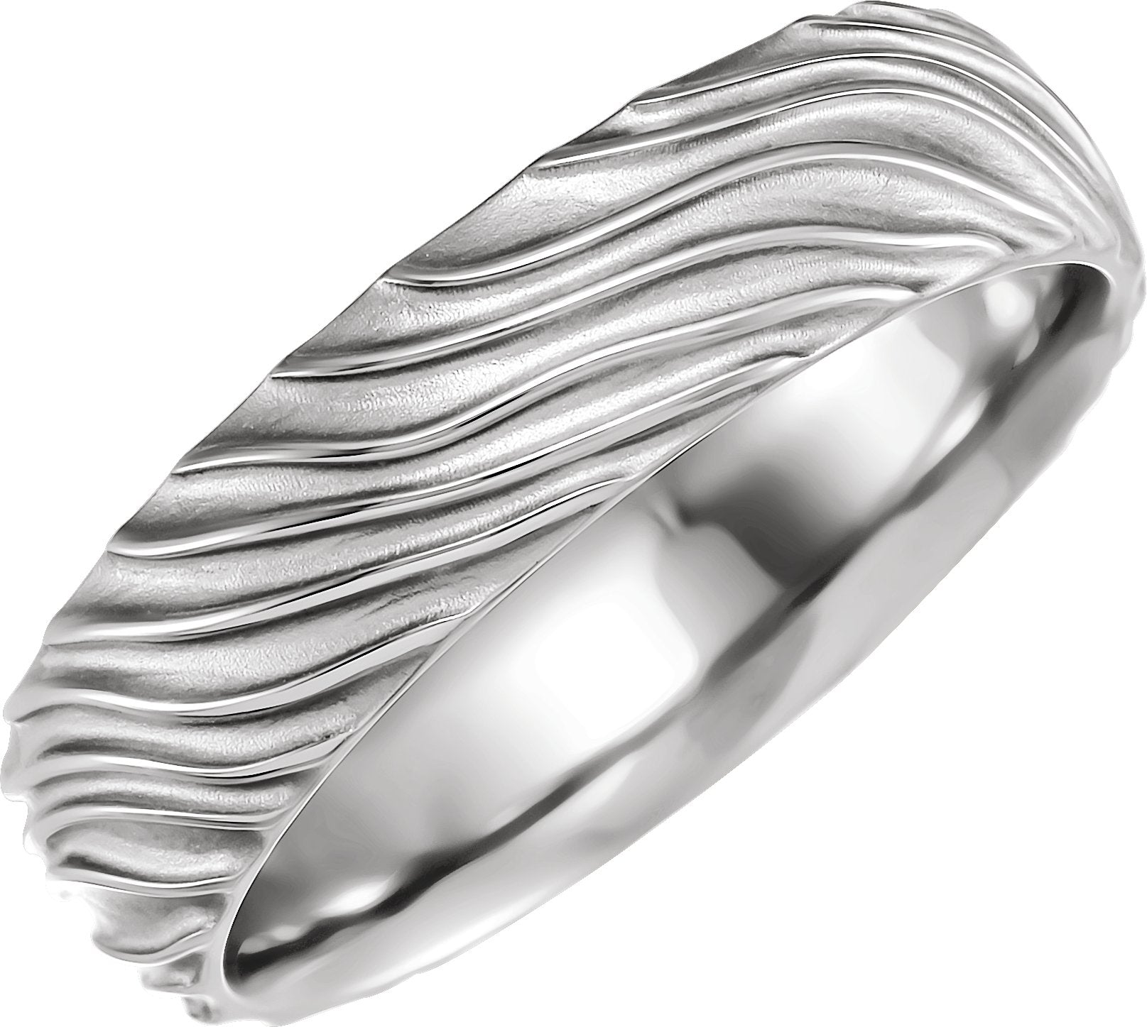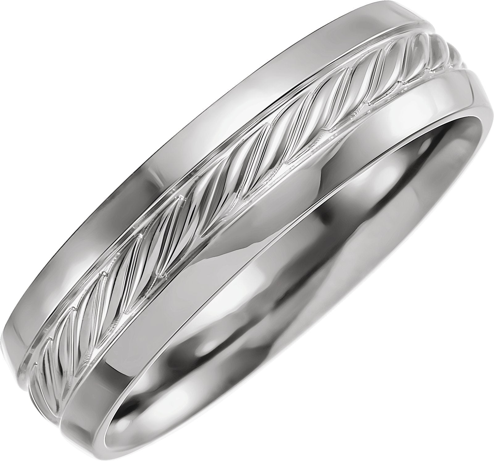 14K White 6 mm Beveled-Edge Rope Comfort-Fit Flat Band Size 7.5