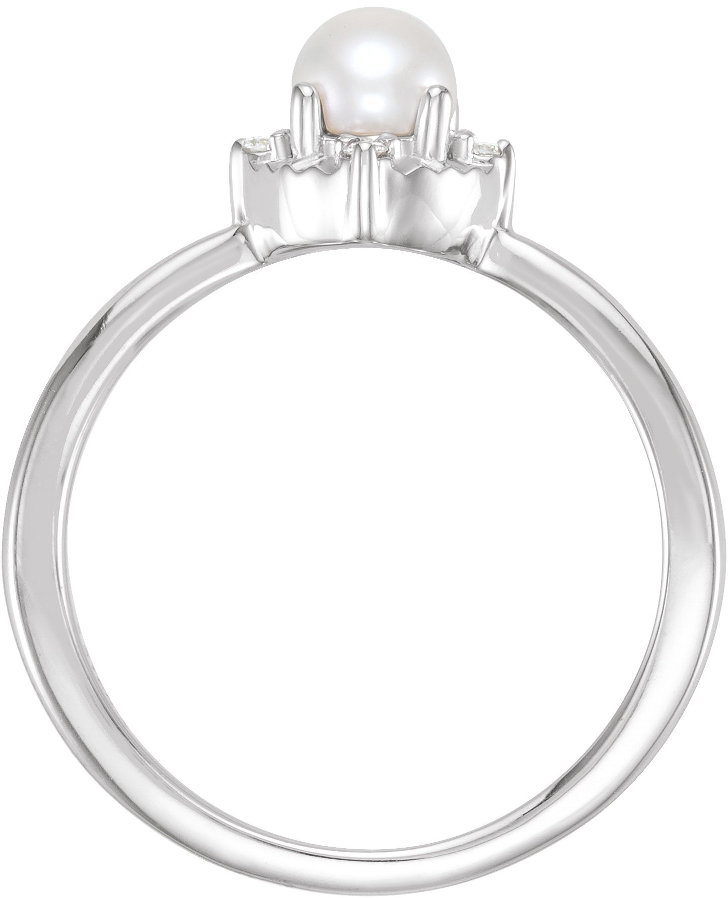 Sterling Silver Cultured White Freshwater Pearl & .04 CTW Natural Diamond Halo-Style Ring