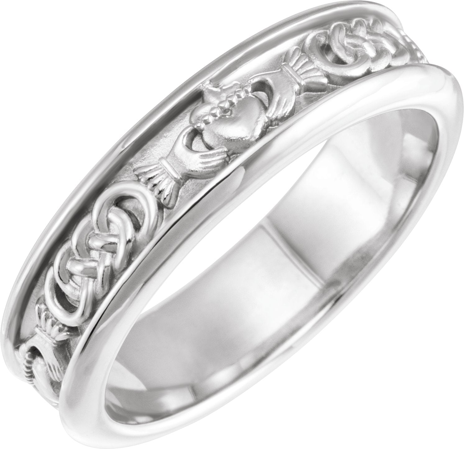 14K White 5.5 mm Claddagh Comfort-Fit Flat Band Size 7